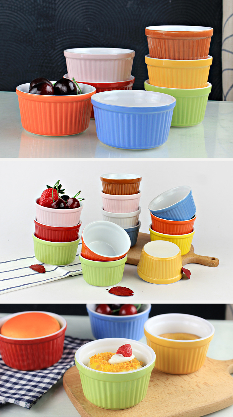 法式圆形陶瓷蛋糕杯 多色条纹烘焙烤盅 空气炸锅可用舒芙蕾杯烤碗