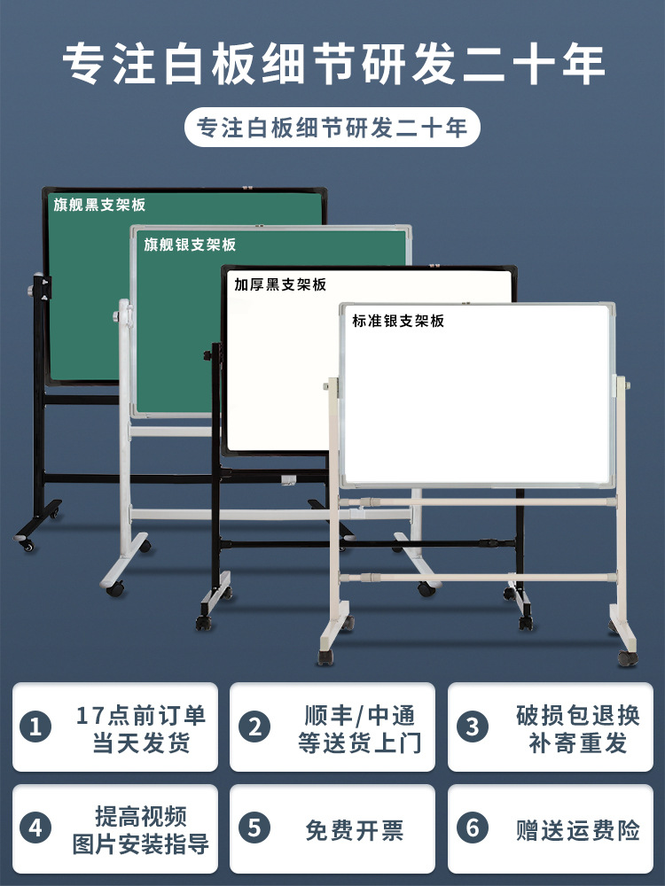 | silver 100*180 double-sided whiteboard + bracket + gift(银100*180双面白板+支架+赠品) | USD $52.08 | 9901 set available |