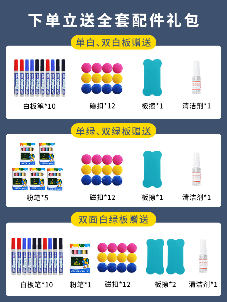 | black 100*150 green chalkboard + bracket + gift(黑100*150白绿板+支架+赠品) | USD $41.45 | 9906 set available |