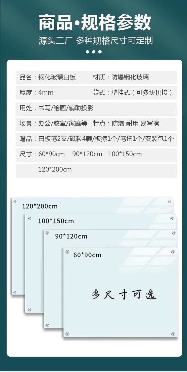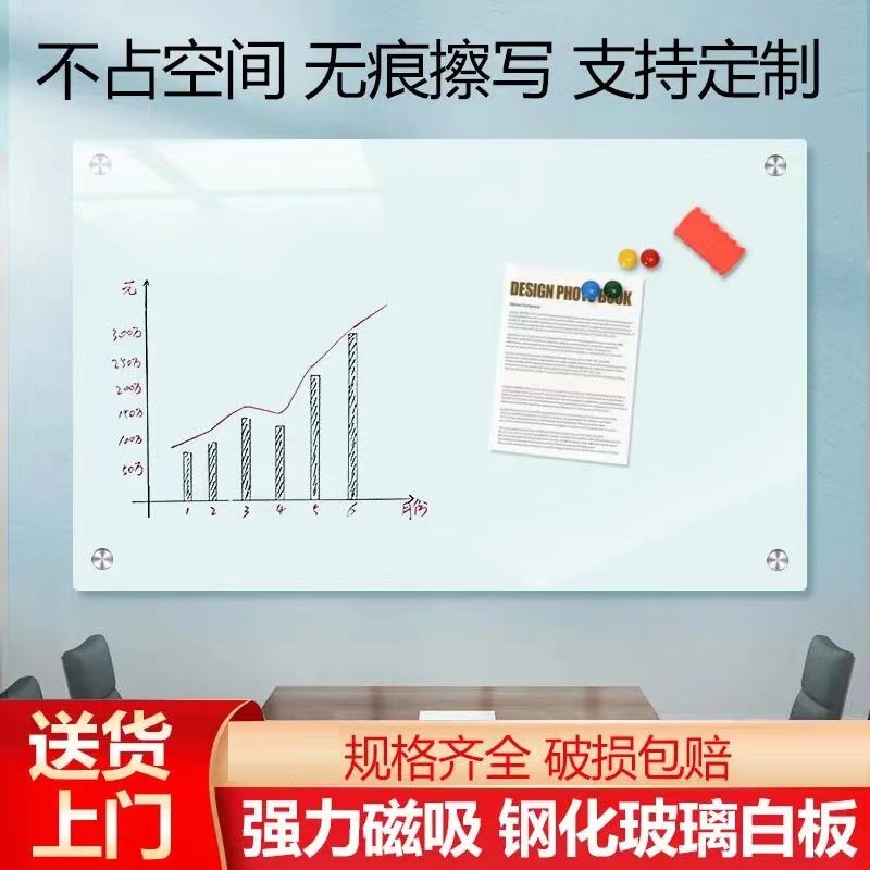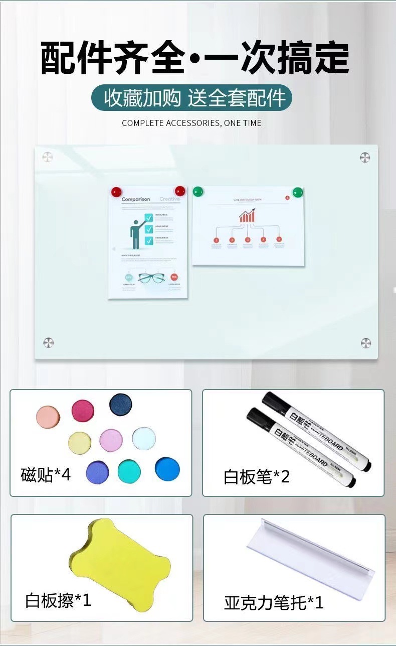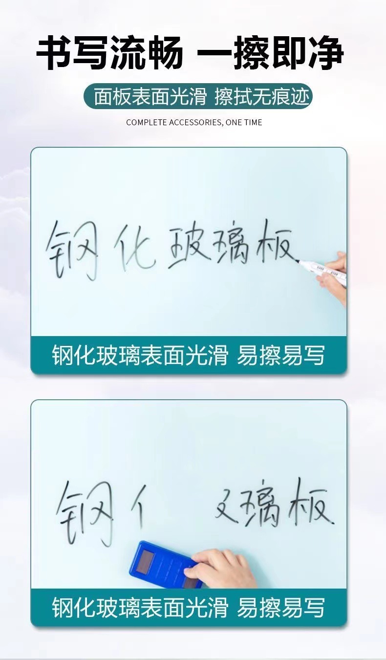 墙贴室办公玻璃钢化磁性挂式会议家用培训写字板教学磁吸玻璃白板