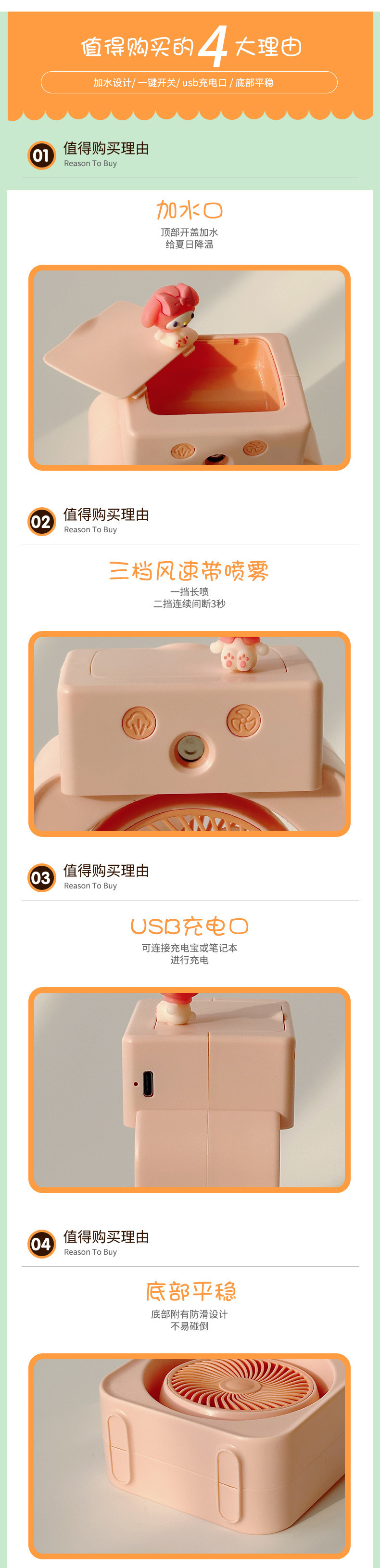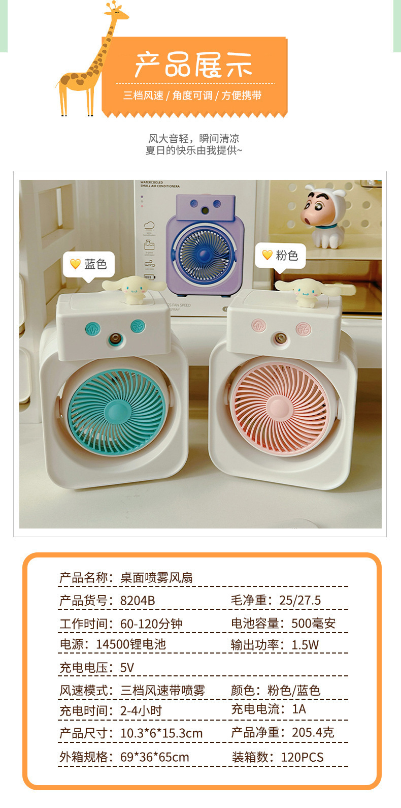 便携加湿器桌面风扇迷你小风扇USB充电喷雾制冷小空调ins补水风扇