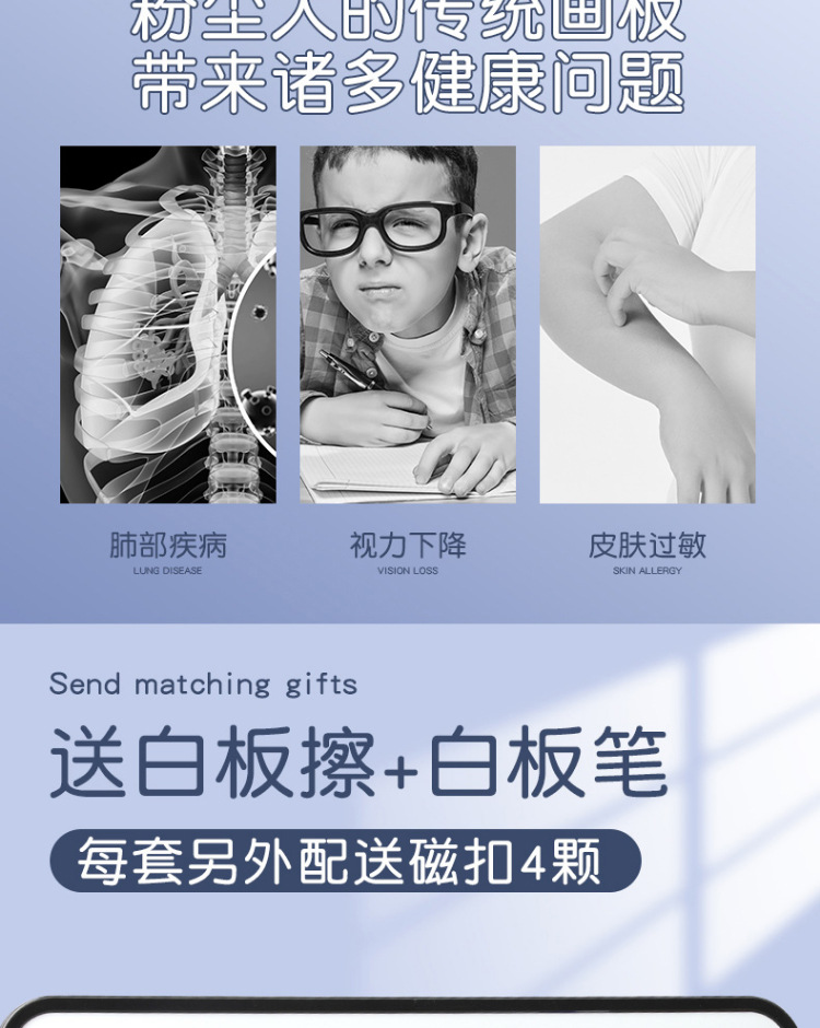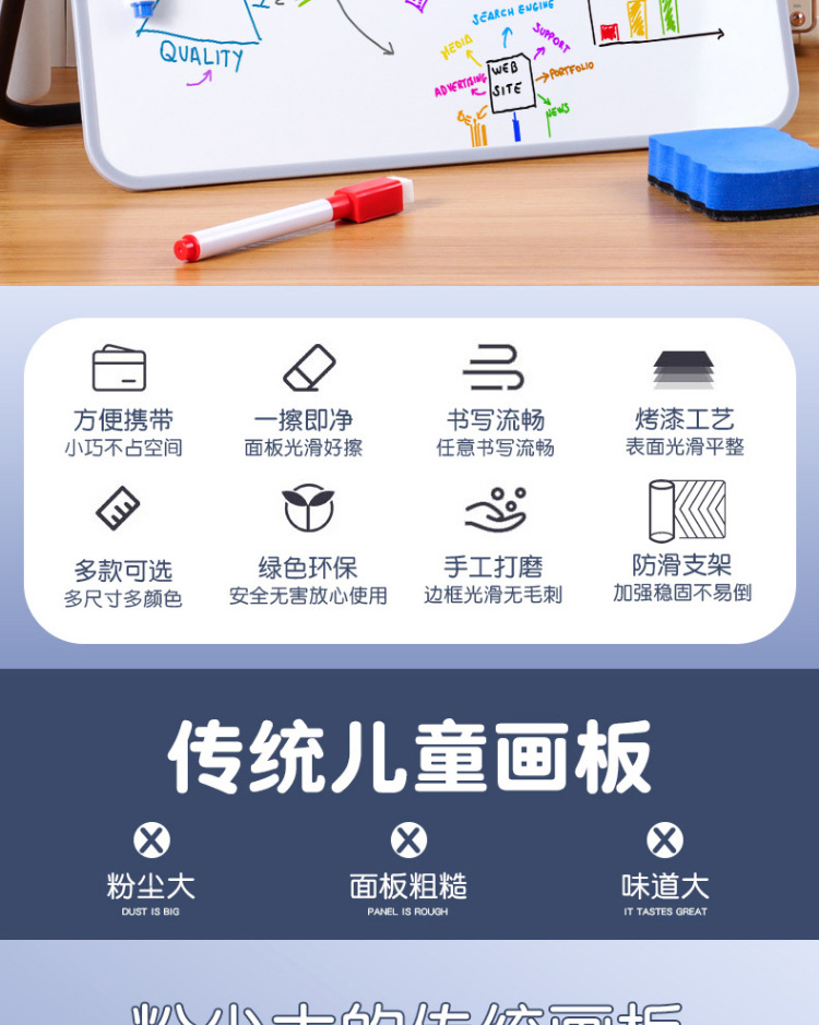 小白板双面磁性小黑板画板可擦软边白板留言板会议直播备忘提示板