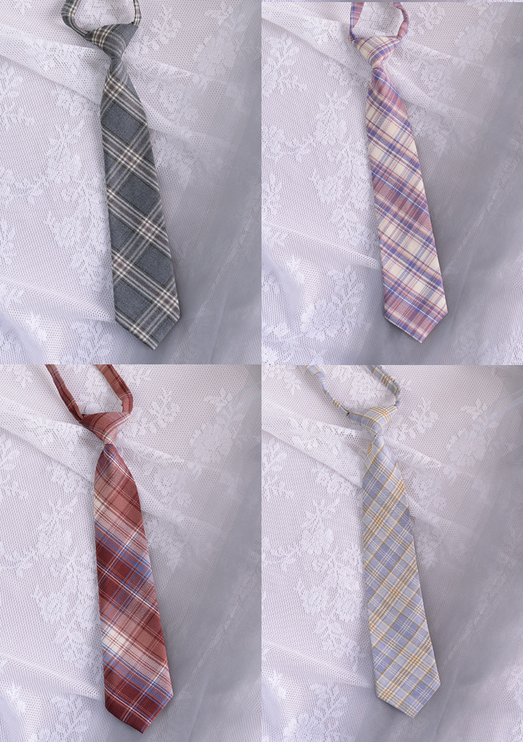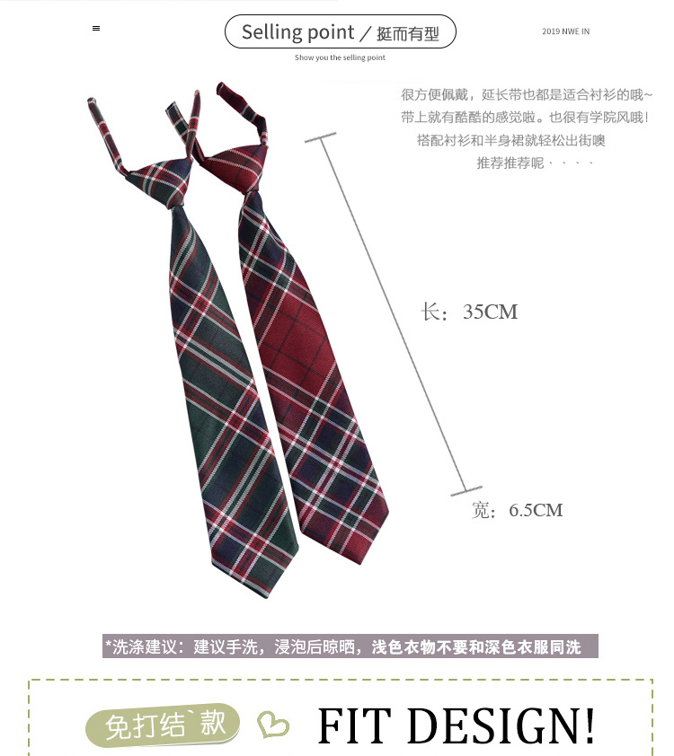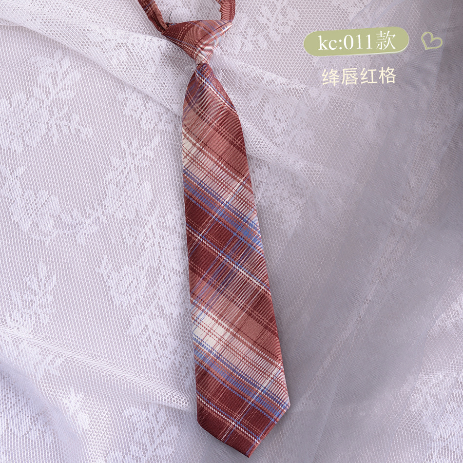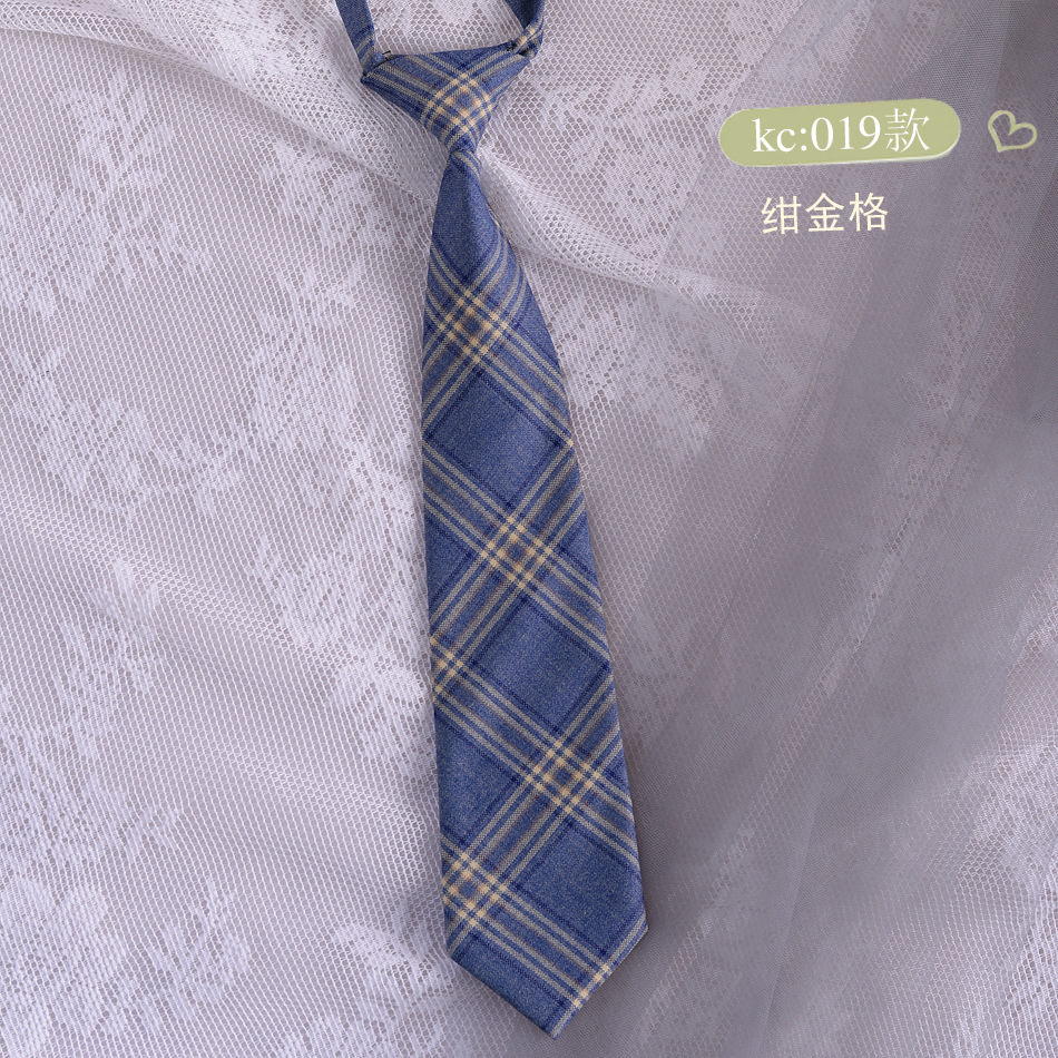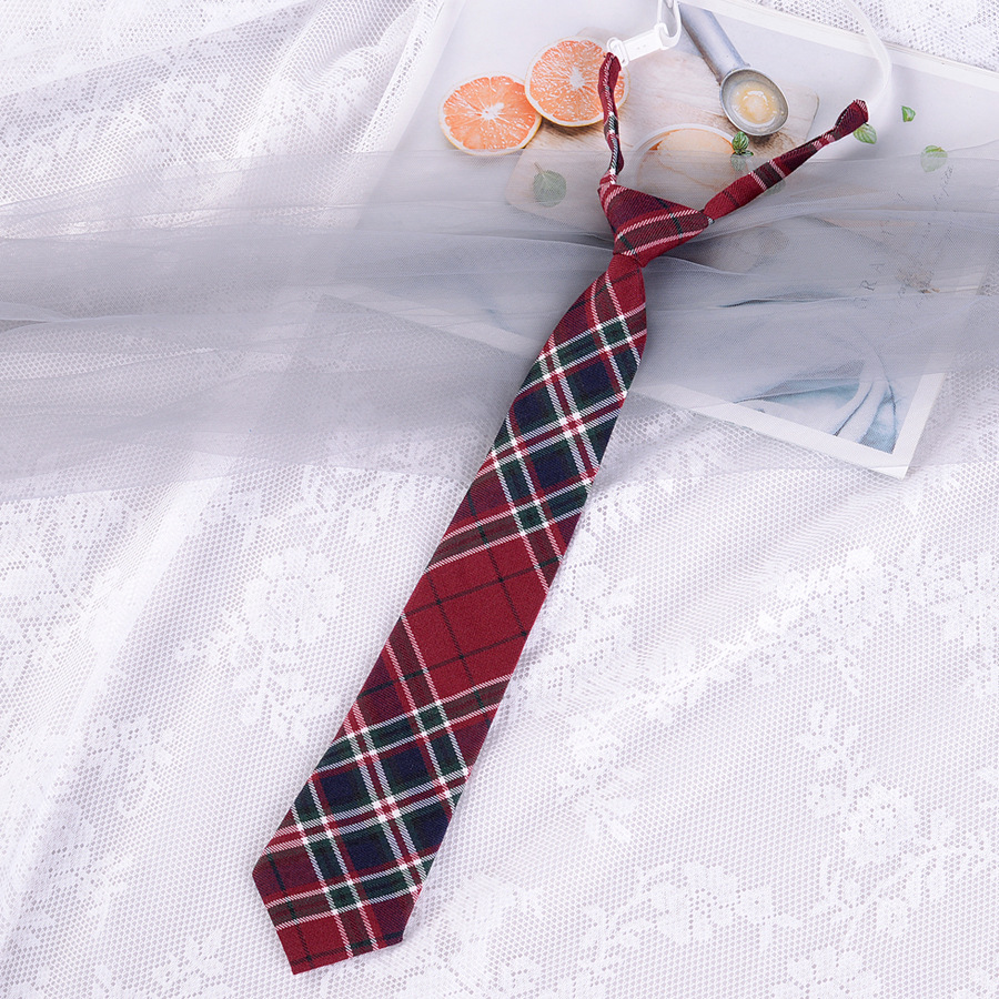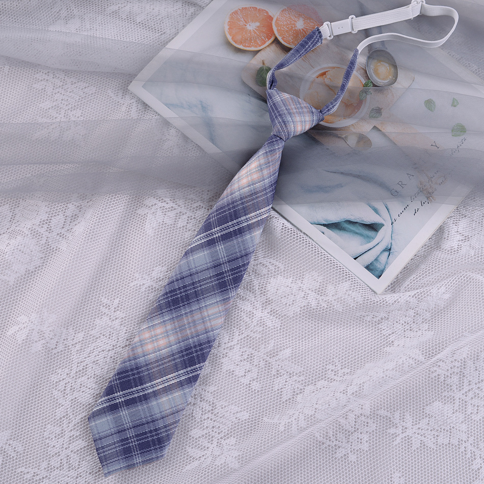 厂家跨境免打结jk领带女制服配饰百搭学院风格子卡扣领带休闲