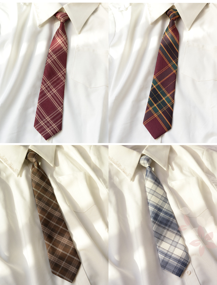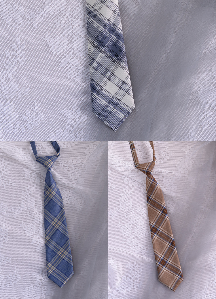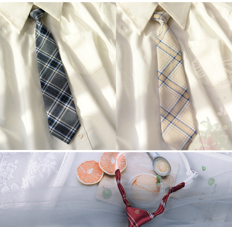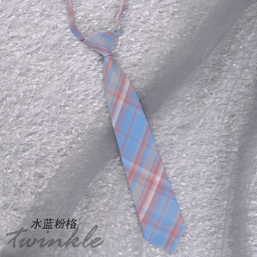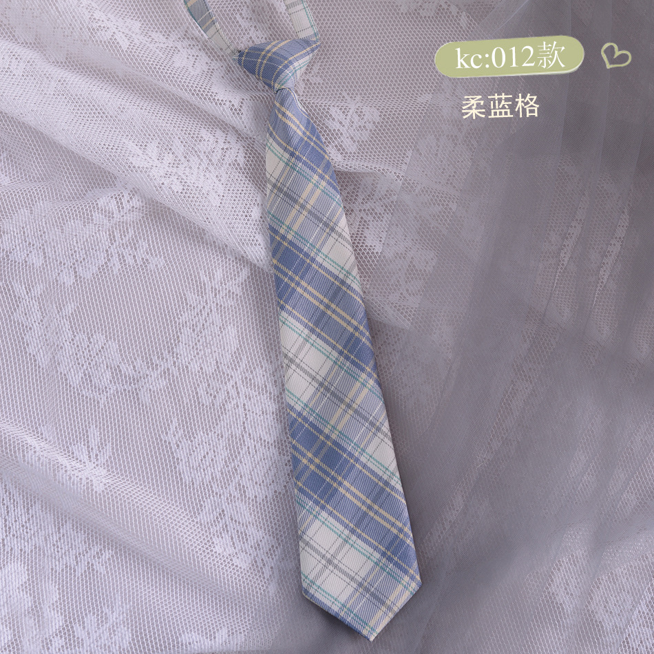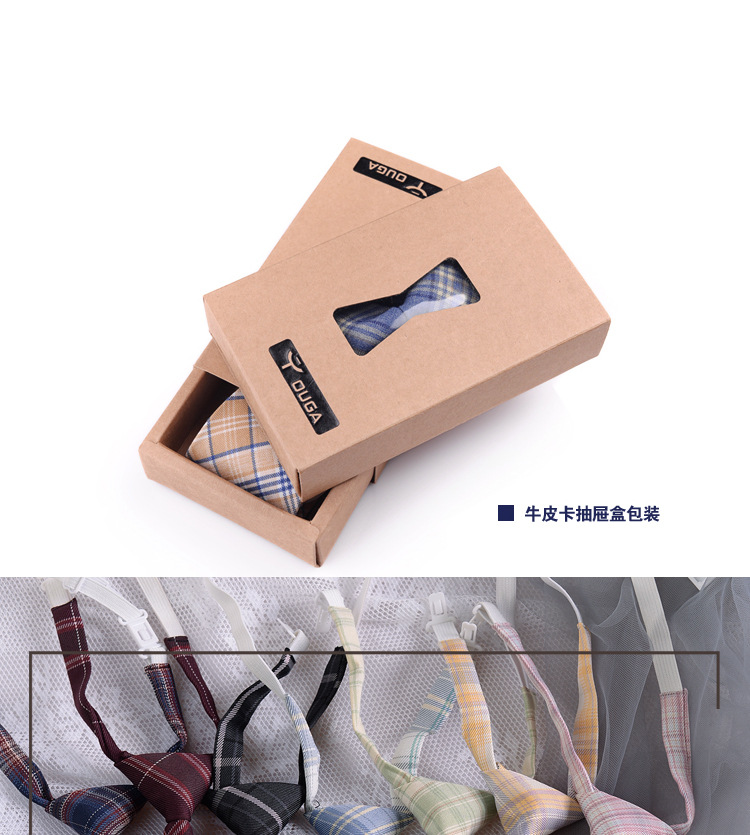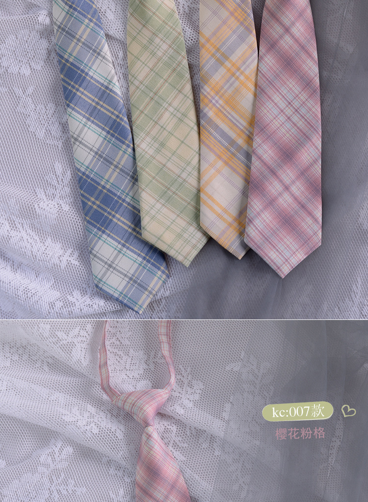 厂家跨境免打结jk领带女制服配饰百搭学院风格子卡扣领带休闲