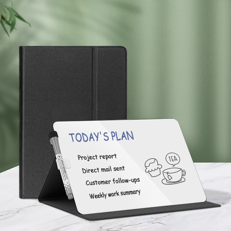磁性钢化玻璃桌面小白板商务折叠便携支架式办公留言板台式便签磁