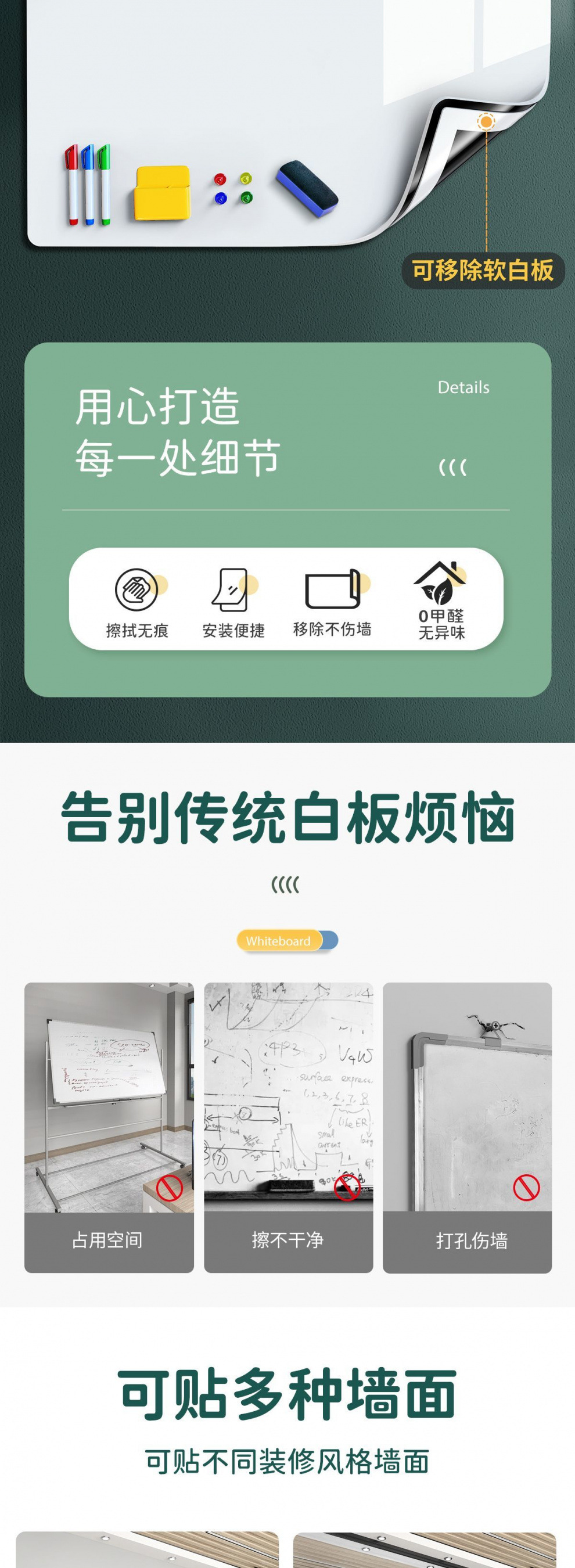 磁性白板贴办公墙贴不伤墙可擦写小黑板会议家用教学涂鸦写字板
