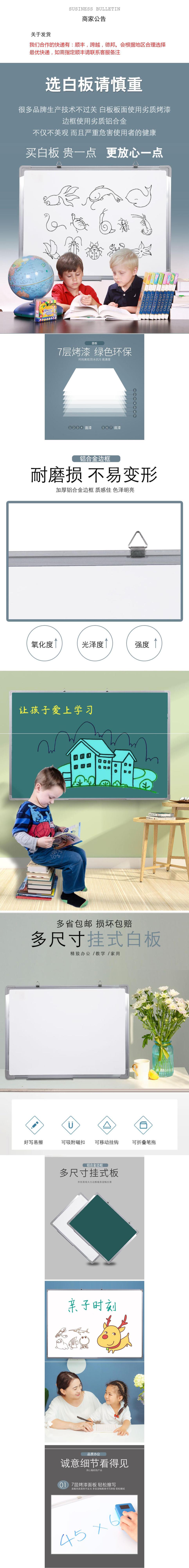 白板写字板挂式家用儿童小黑板教学培训办公会议白班版磁性记事板