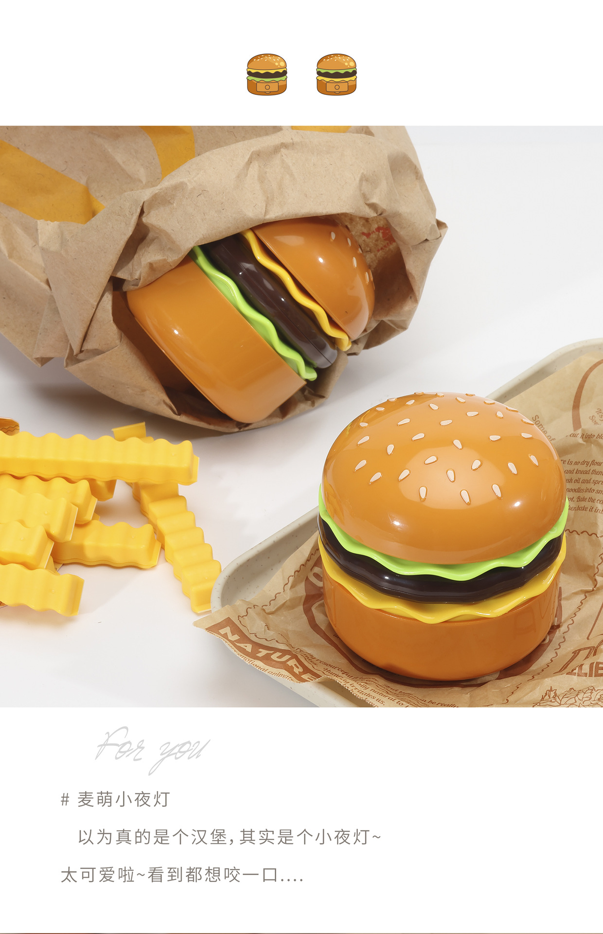 2024新款汉堡包usb充电铅笔刀LED软管可折叠收纳台灯充电式