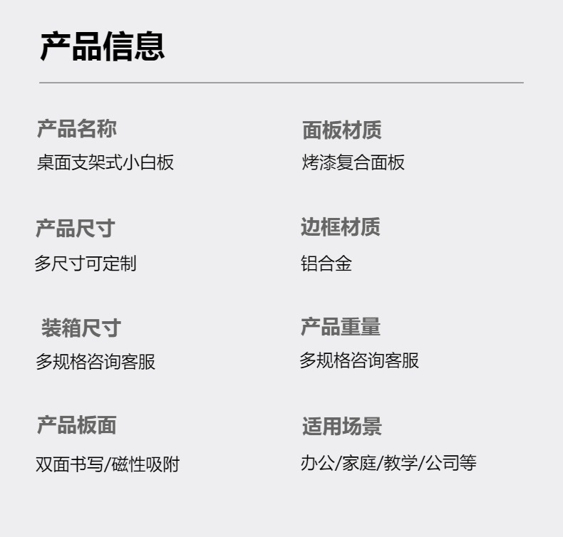 双面磁性桌面支架小白板办公会议手写板教学用家用写字板儿童画板