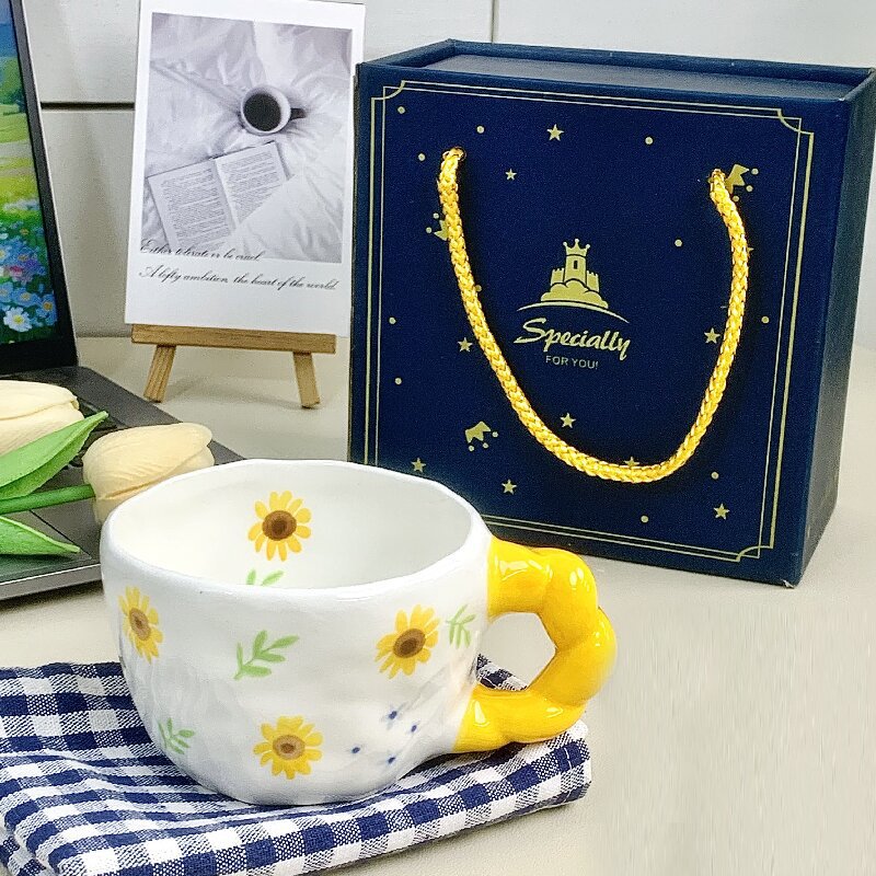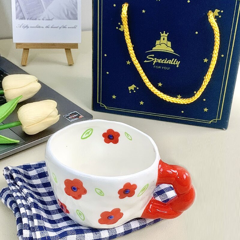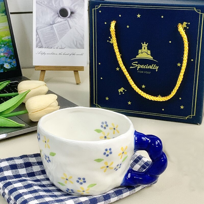 蒂范陶瓷杯韩式ins风手绘釉下彩马克杯可爱小众花茶咖啡杯伴手礼