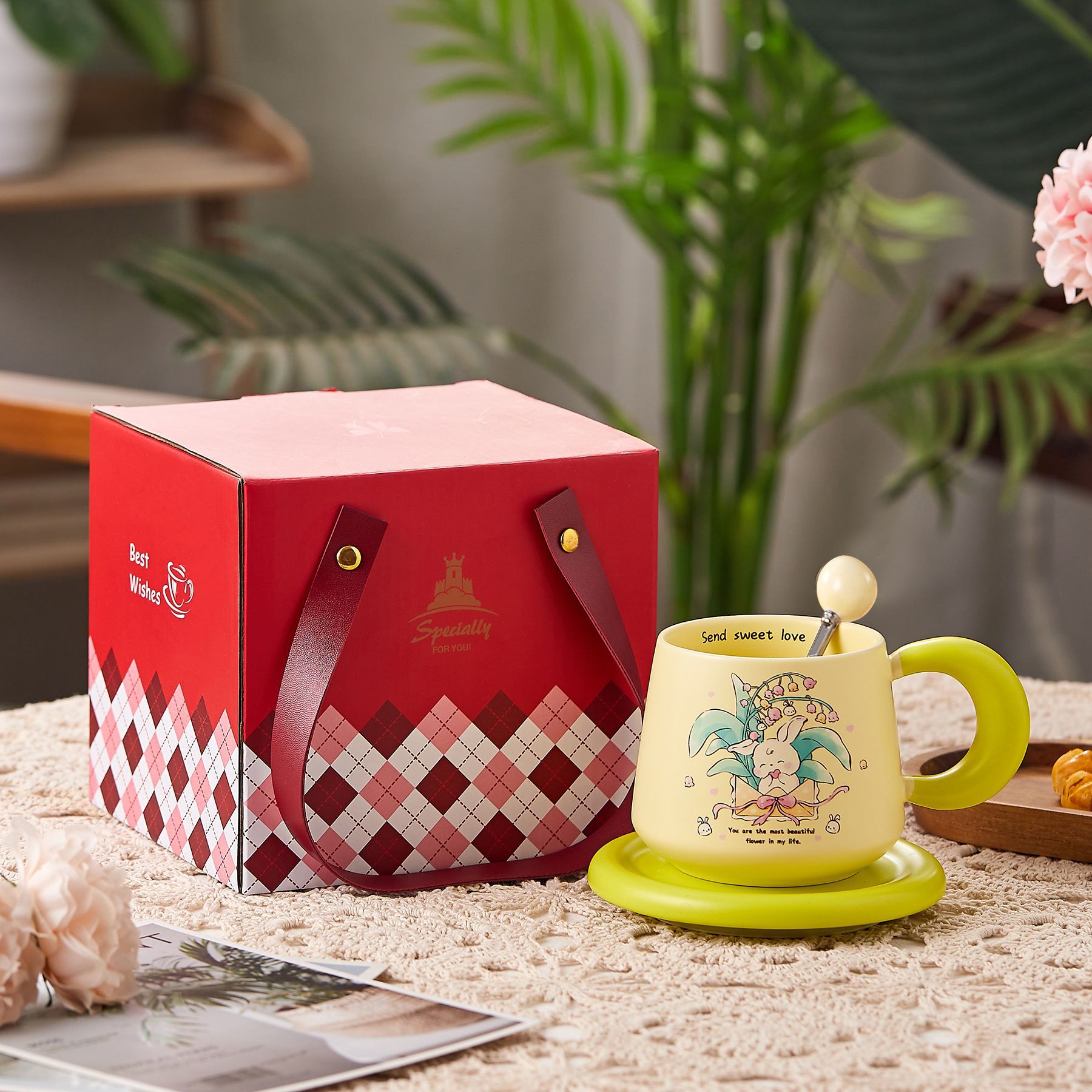 蒂范创意陶瓷杯小红书网红马克杯礼盒装伴手礼卡通咖啡杯碟大容量