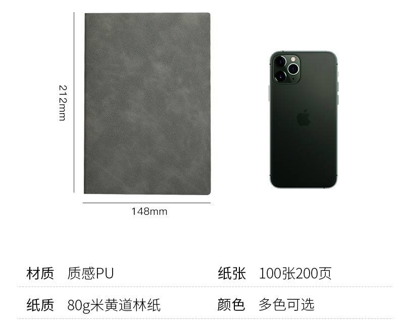 A5笔记本定制Logo简约软皮商务本子复古羊巴皮办公会议加厚记事本