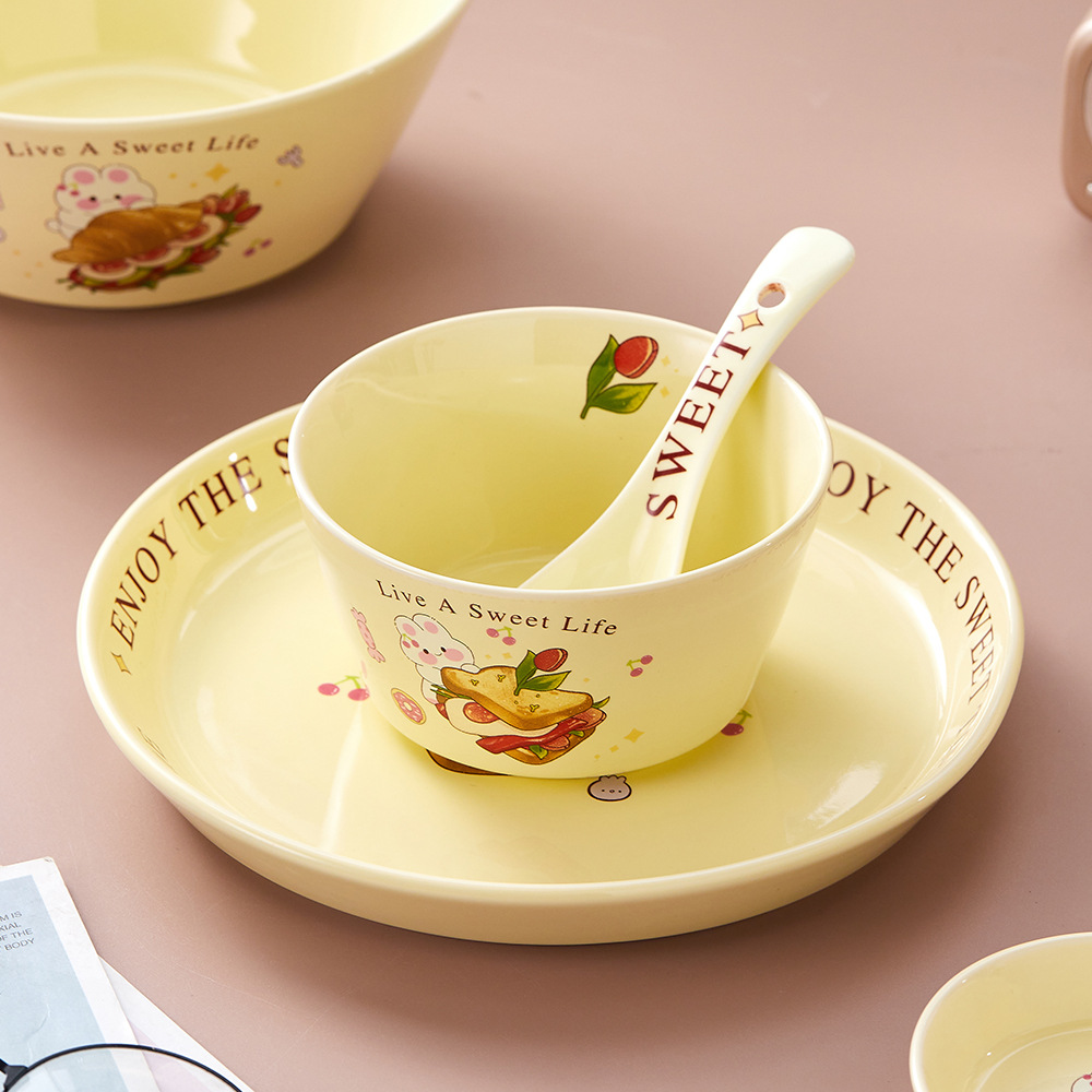 蒂范创意陶瓷卡通餐具网红碗小红书ins家用陶瓷一人食餐具套装