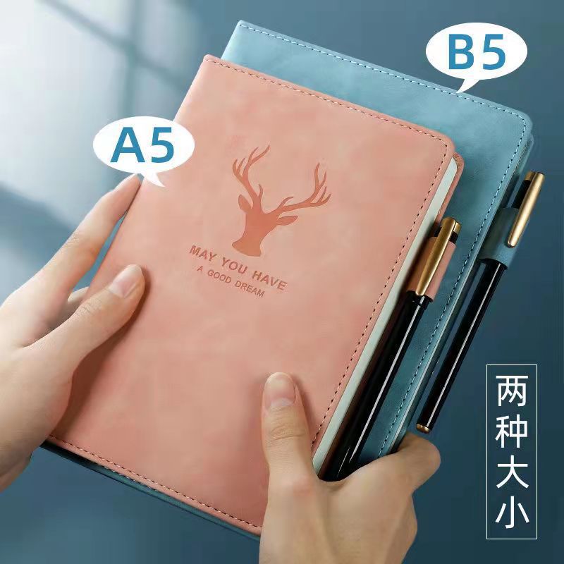 b5笔记本加厚办公工作会议商务记事本鹿头本简约皮面笔记本批发