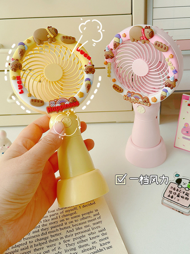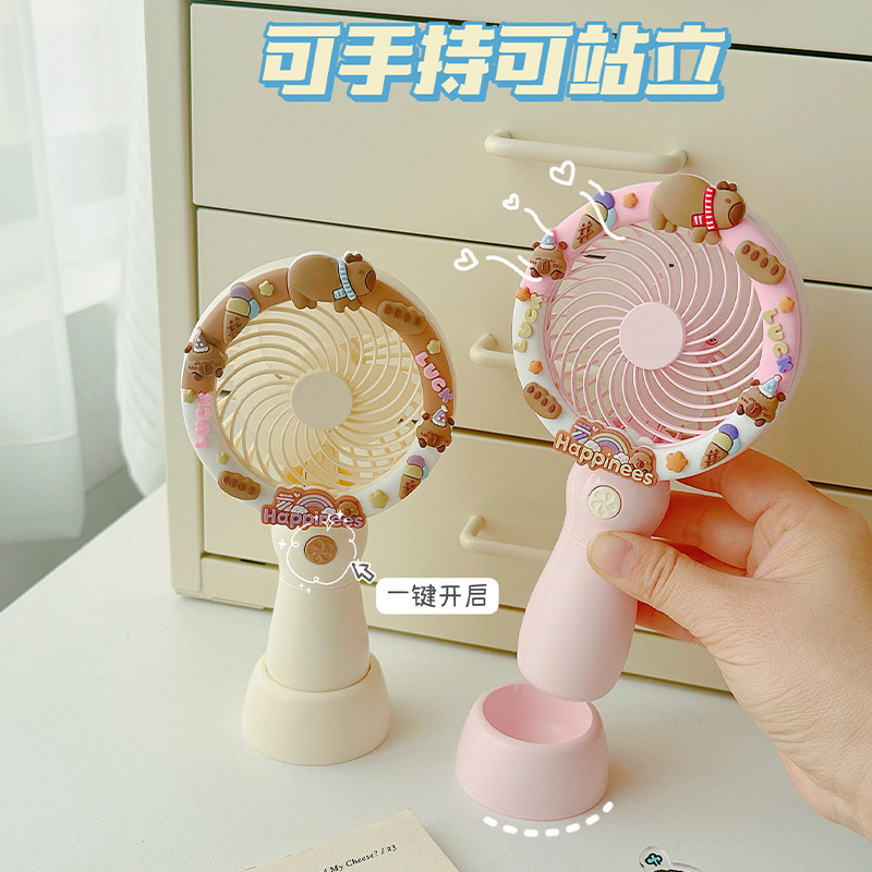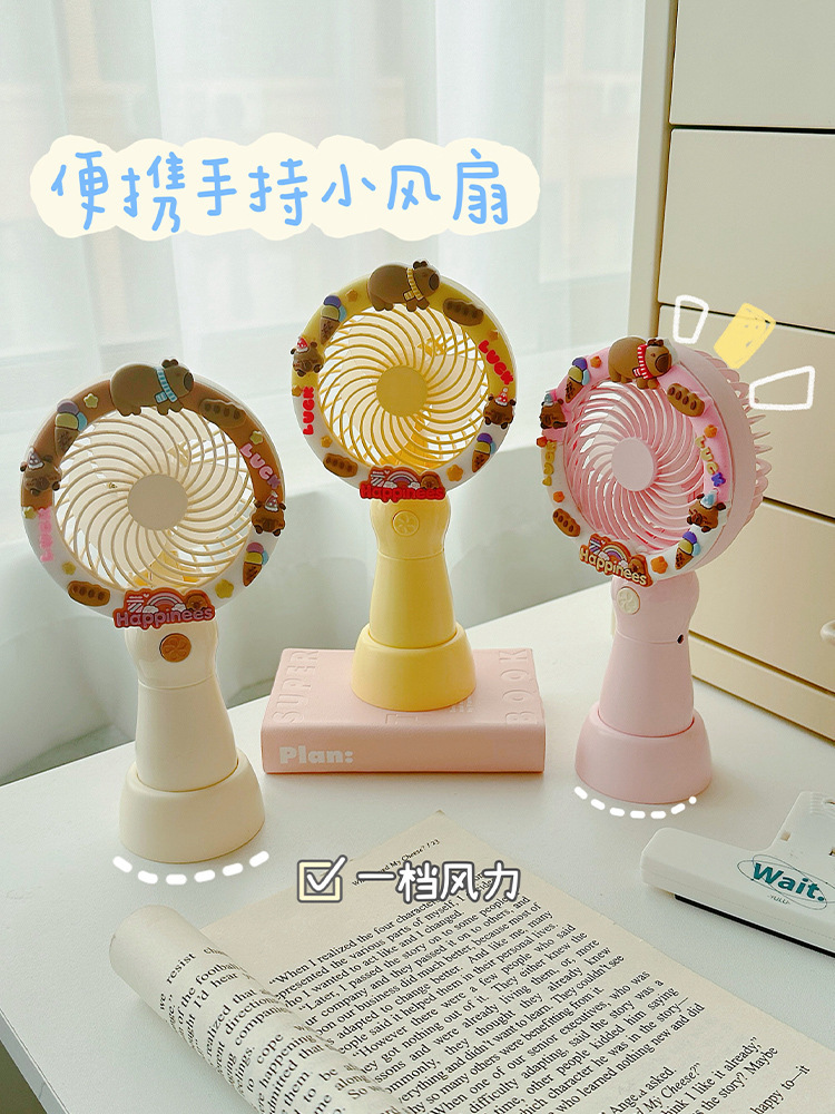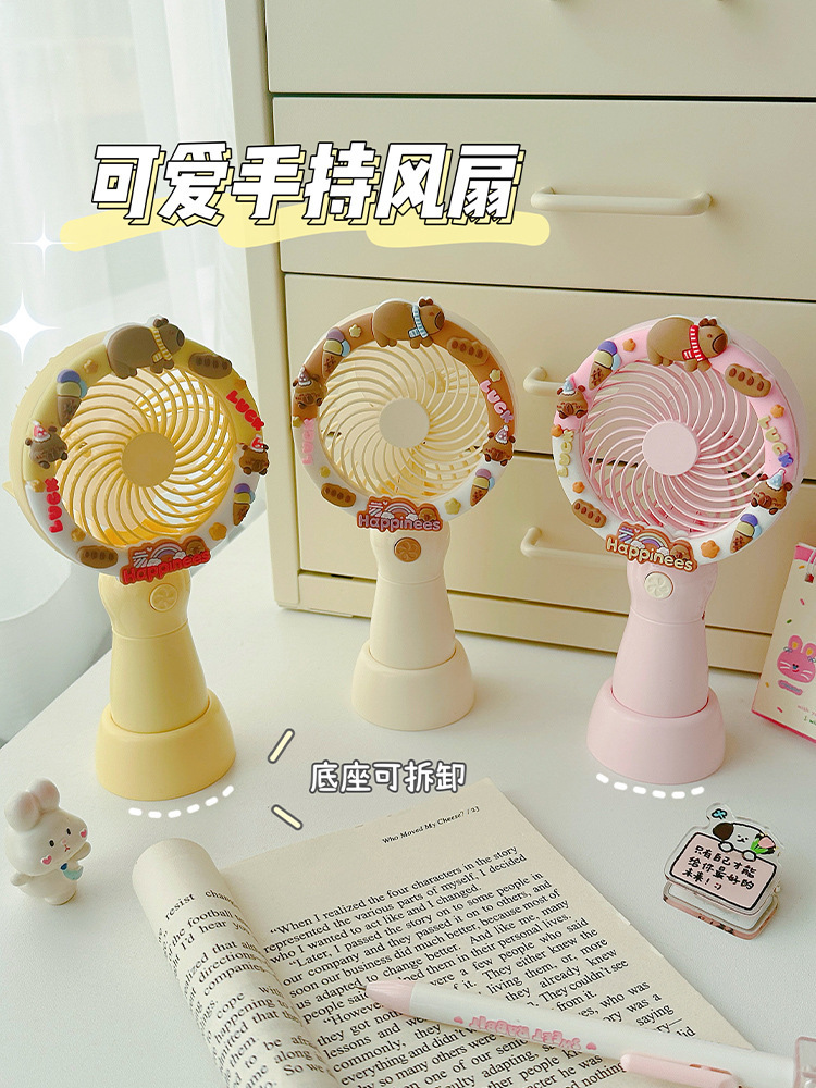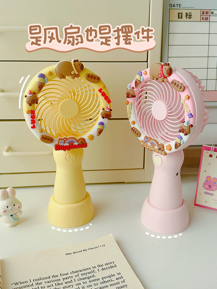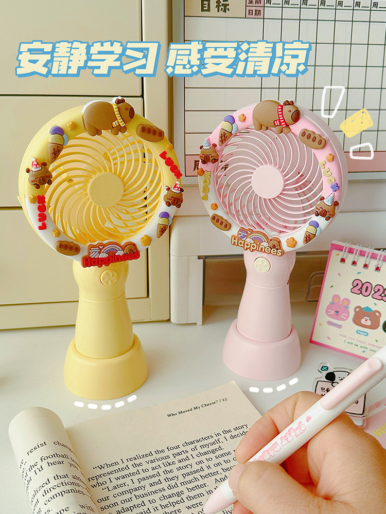 2025新款卡皮巴拉可爱卡通手持风扇办公室桌面电风扇小型桌面风扇