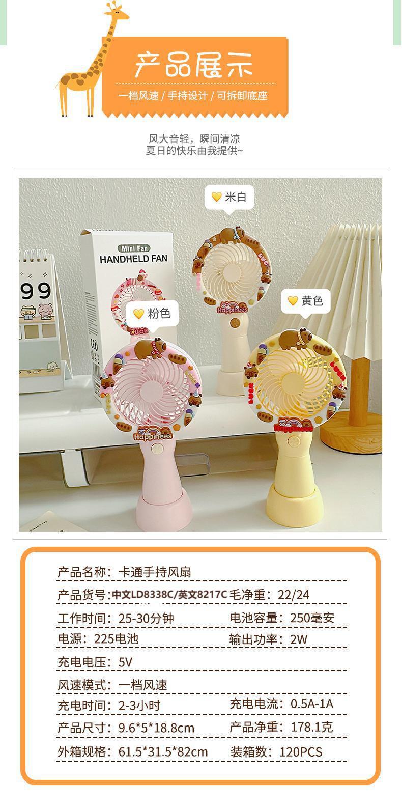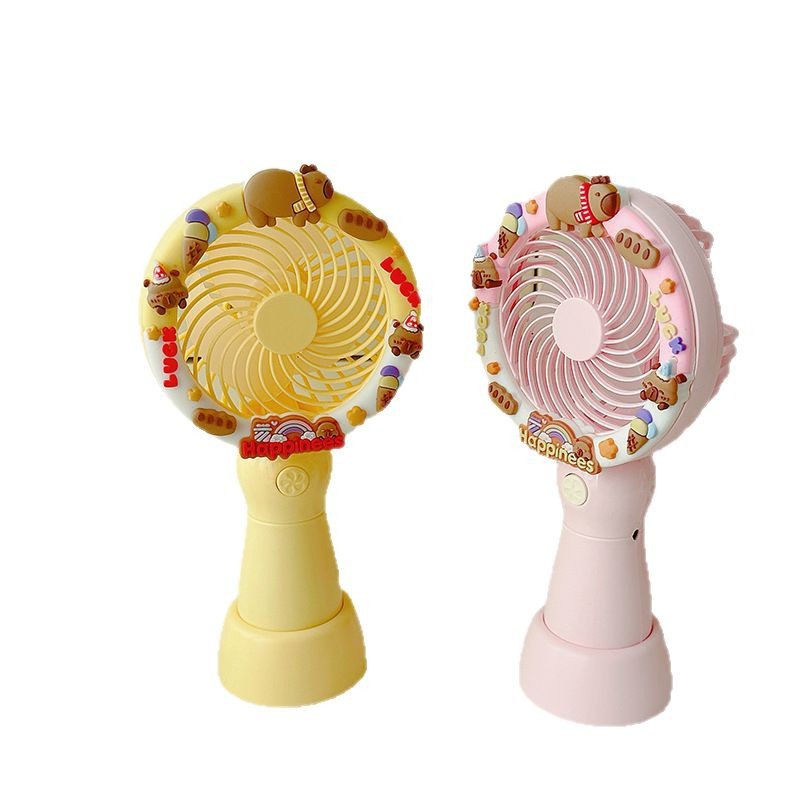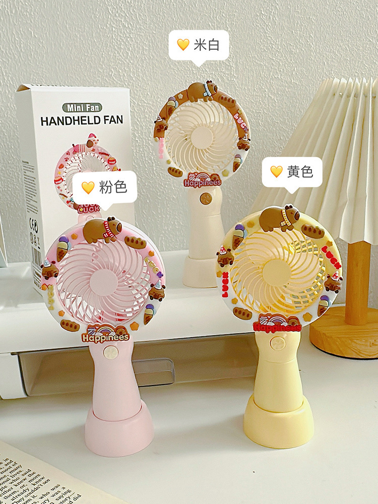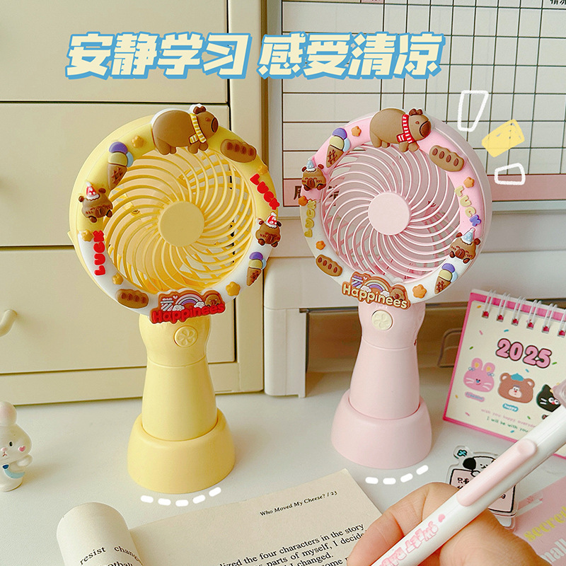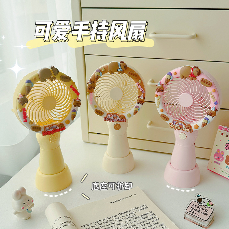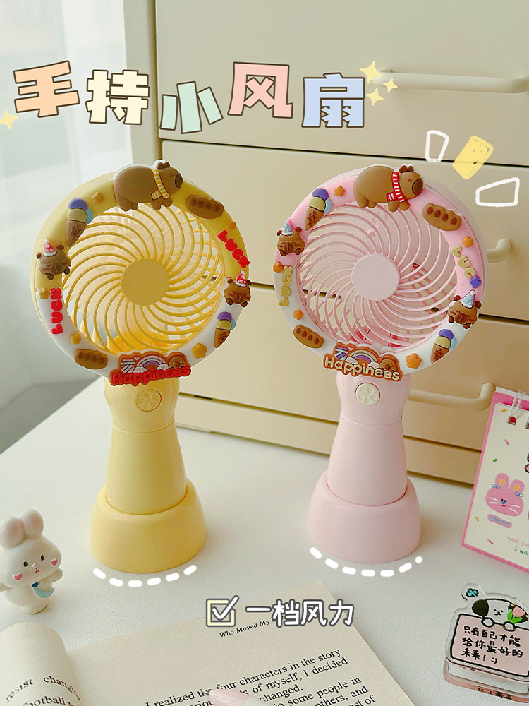 2025新款卡皮巴拉可爱卡通手持风扇办公室桌面电风扇小型桌面风扇