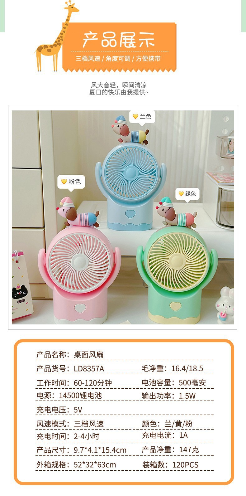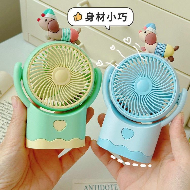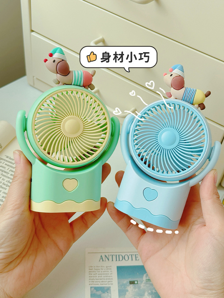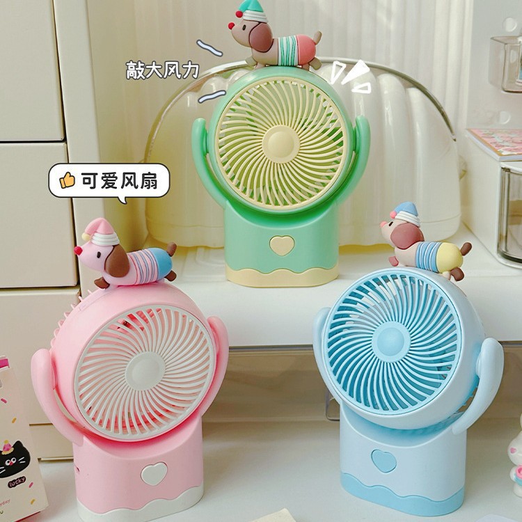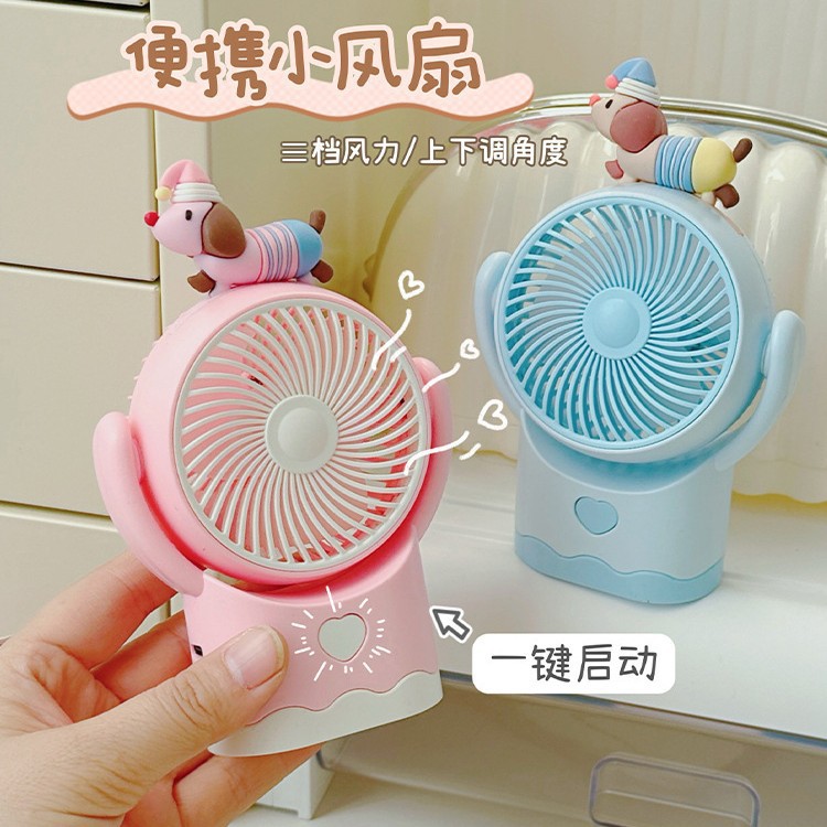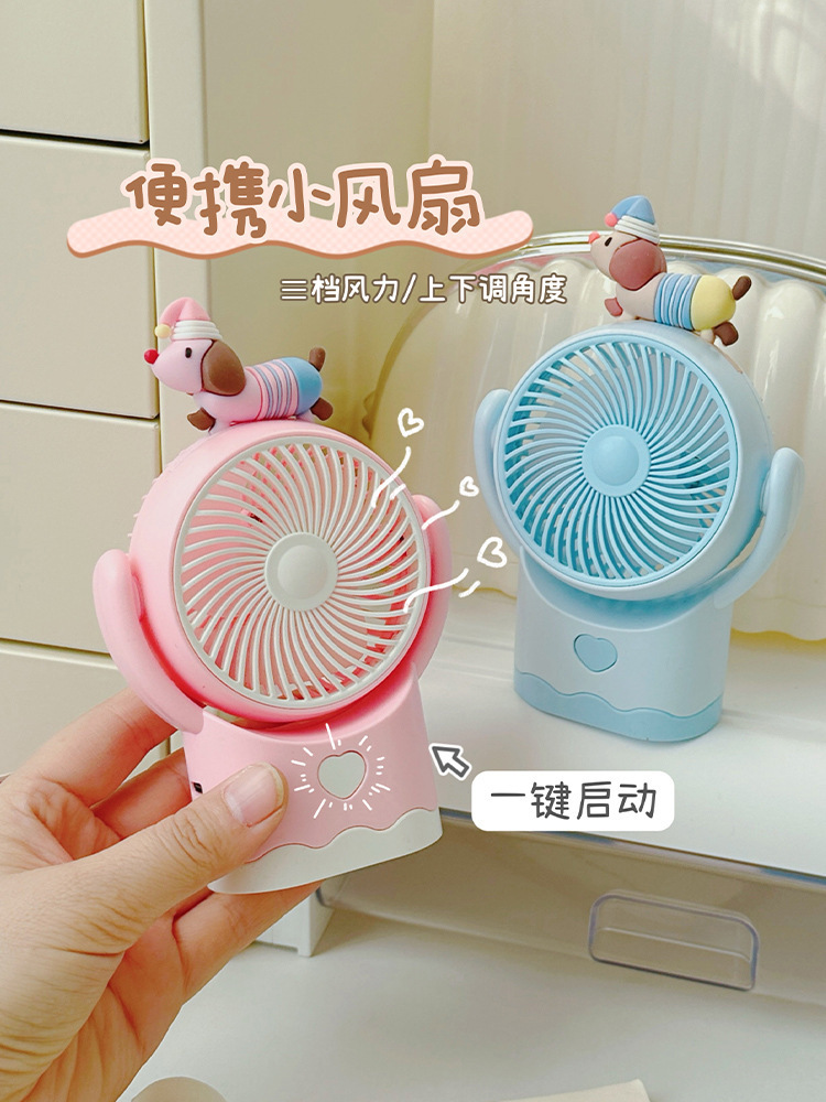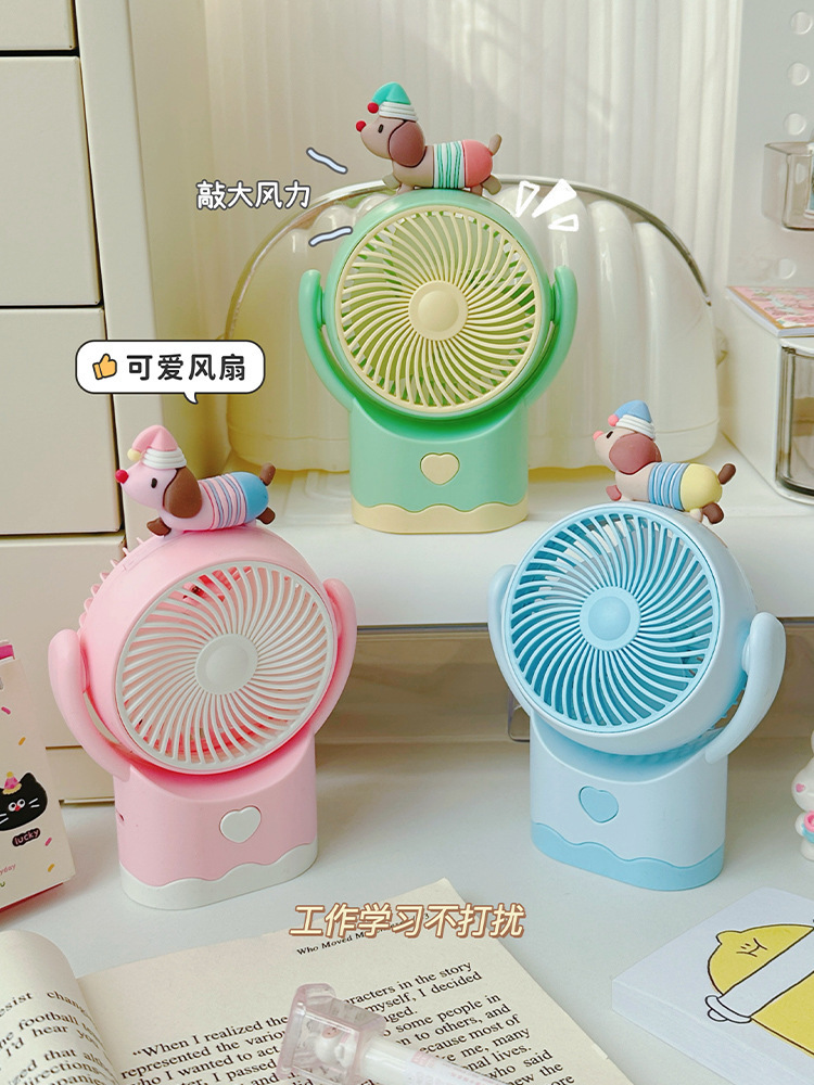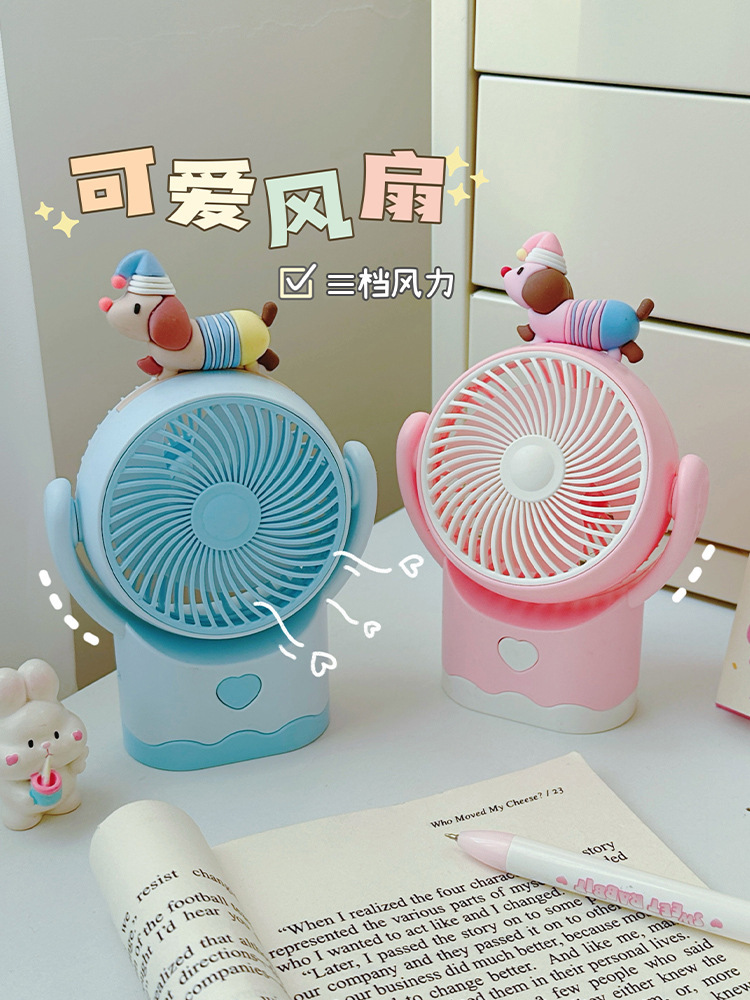 便携迷你小风扇卡通腊肠狗桌面台式小风扇办公室桌面立式静音风扇