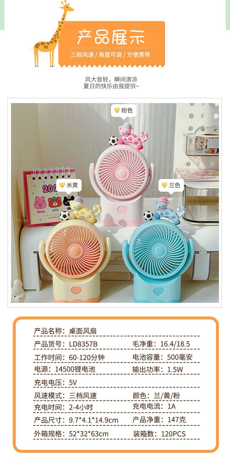 桌面台式小风扇可爱萌宠卡通办公室桌面立式静音风扇便携迷你风扇