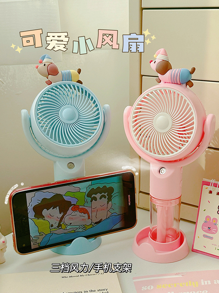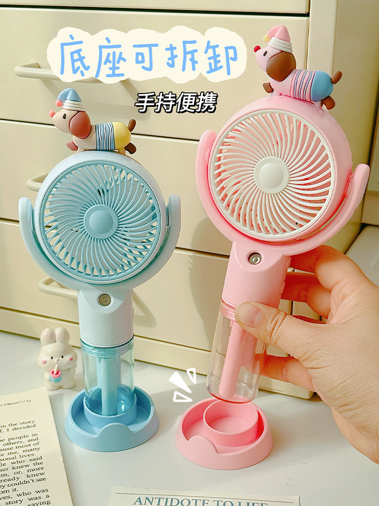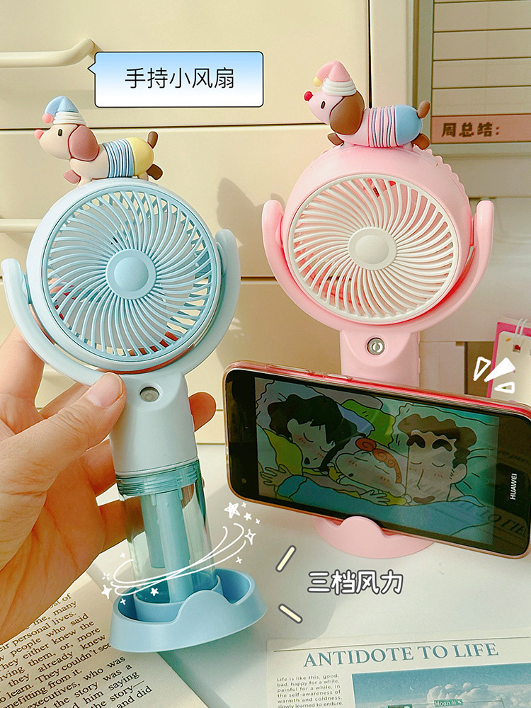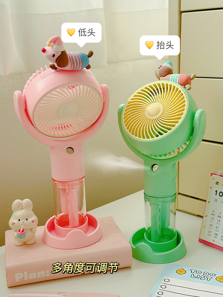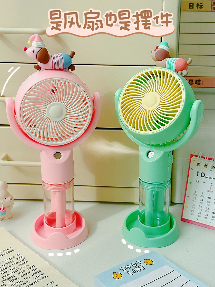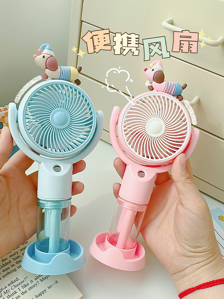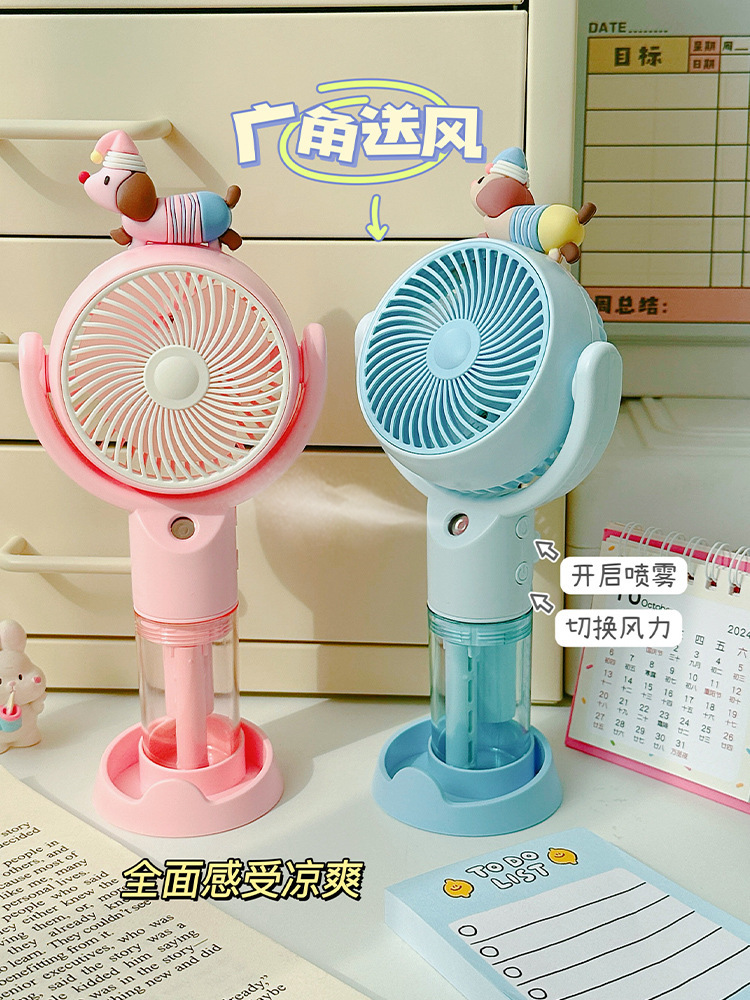 高颜值桌面风扇腊肠狗卡通喷雾手持风扇户外出行便携式手持小风扇