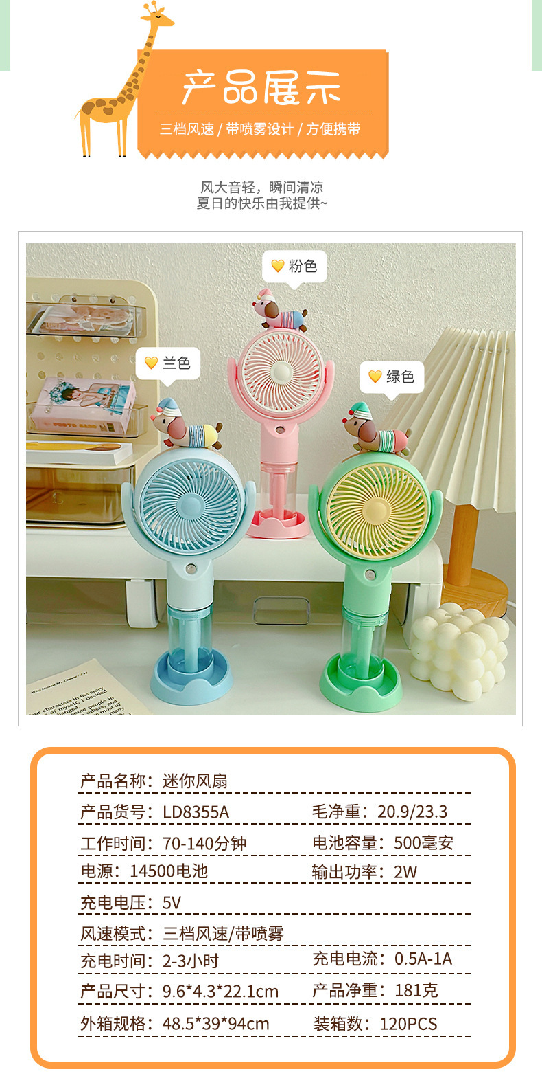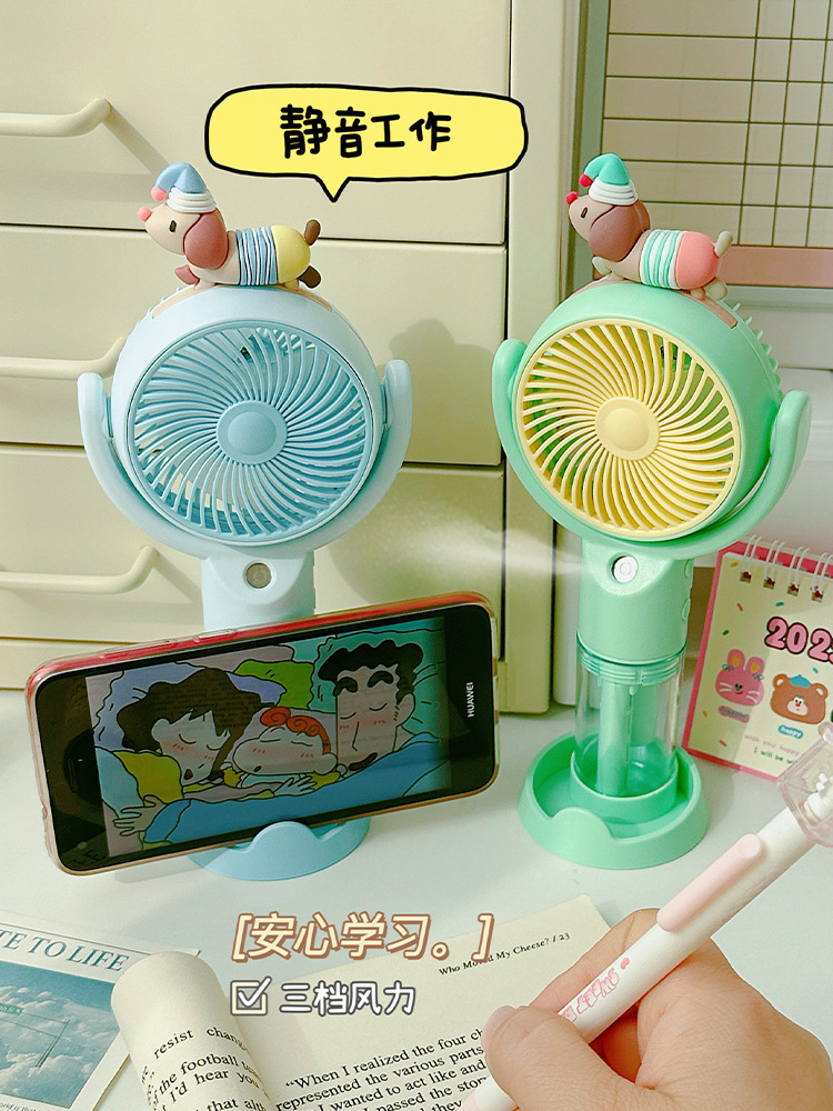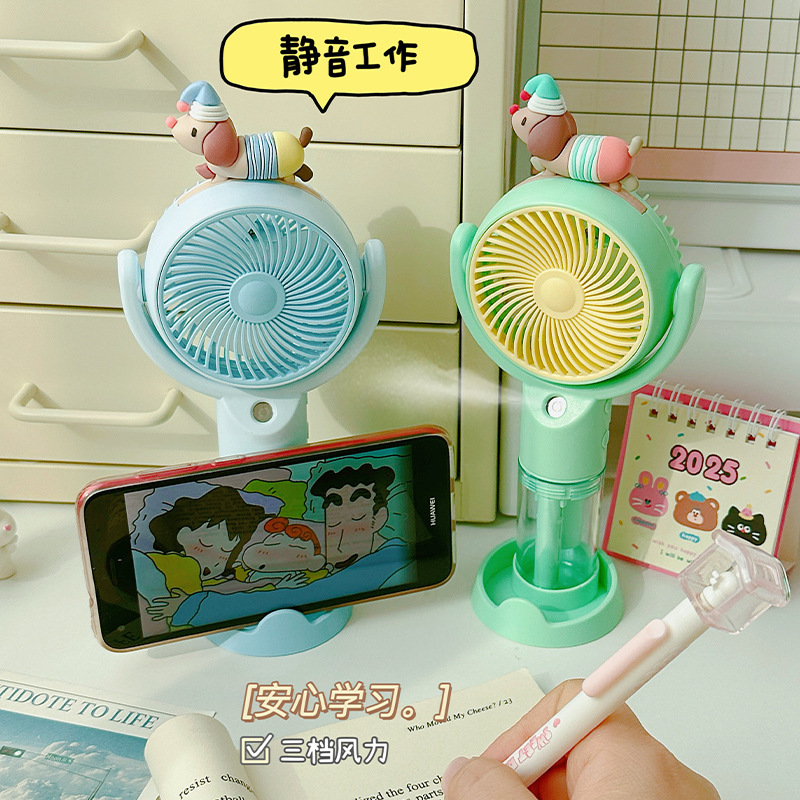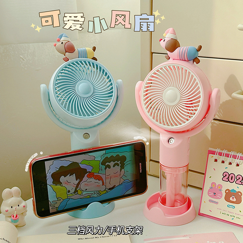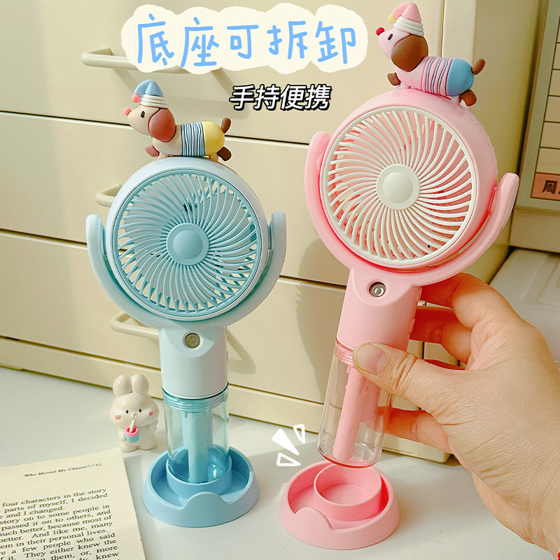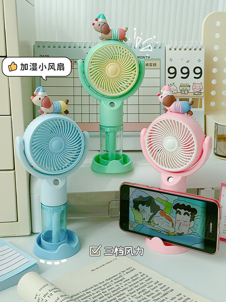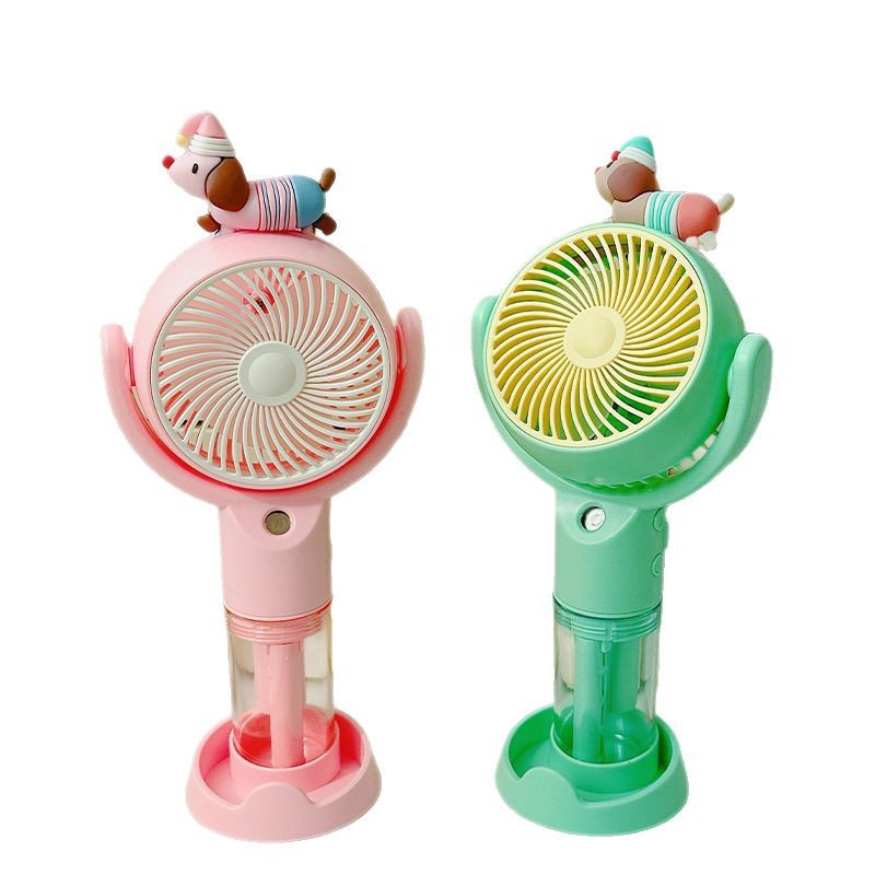 高颜值桌面风扇腊肠狗卡通喷雾手持风扇户外出行便携式手持小风扇