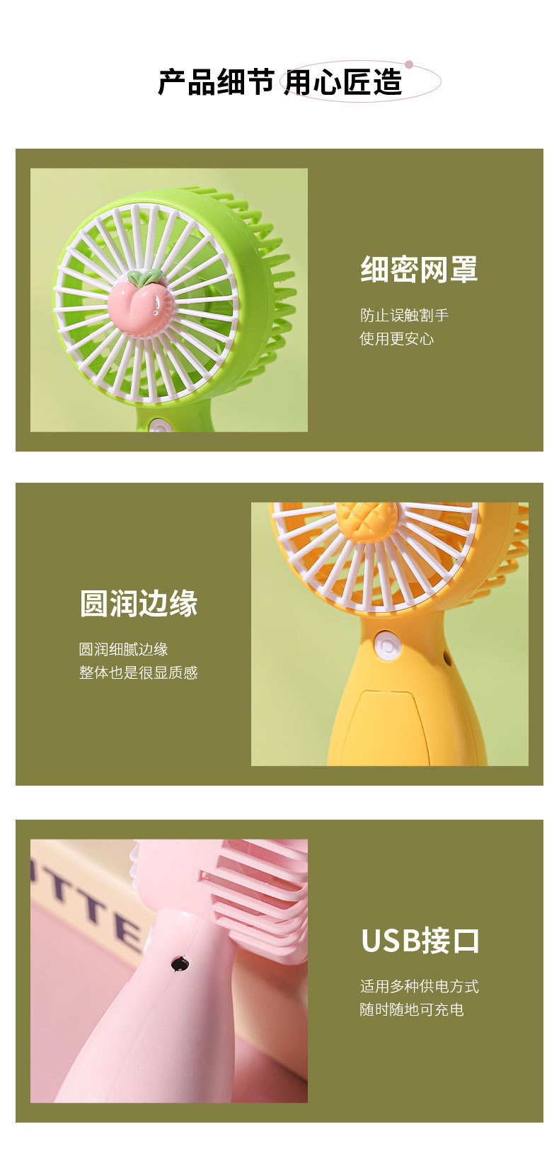 便携式卡通夏季宿舍迷你风扇马卡龙色小清新水果手持小风扇高颜值
