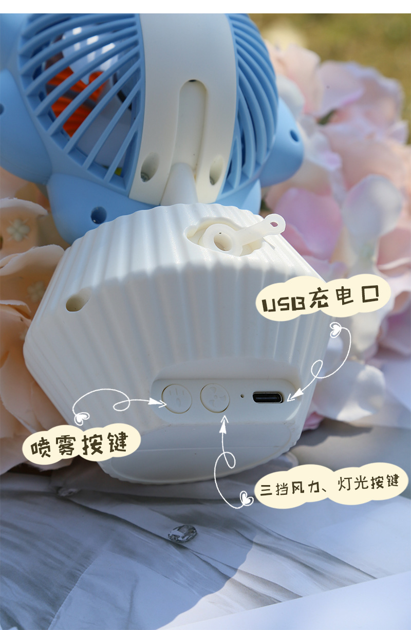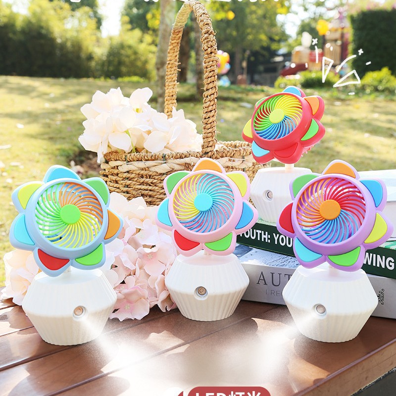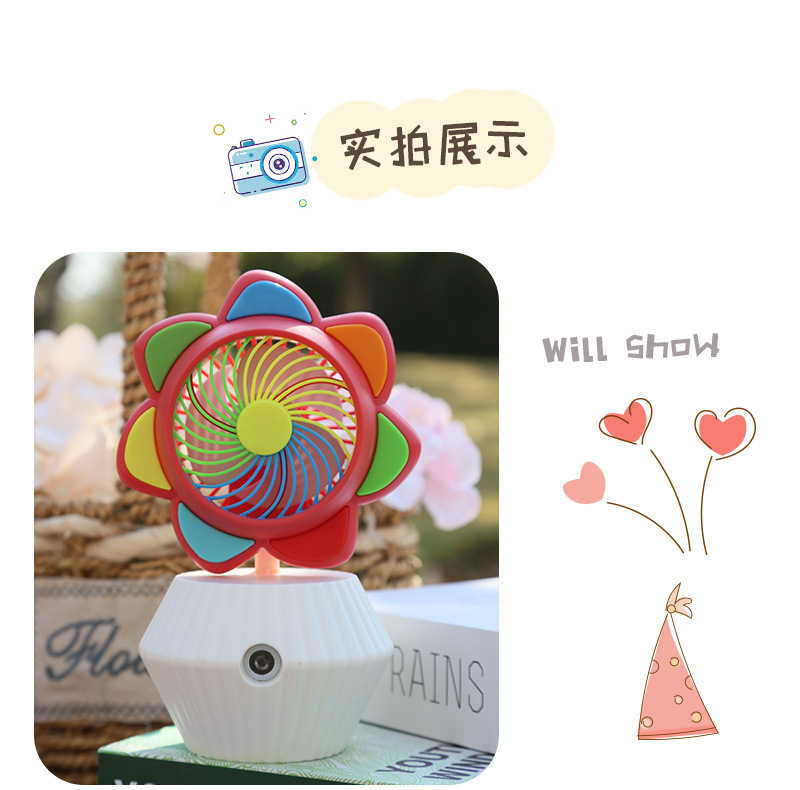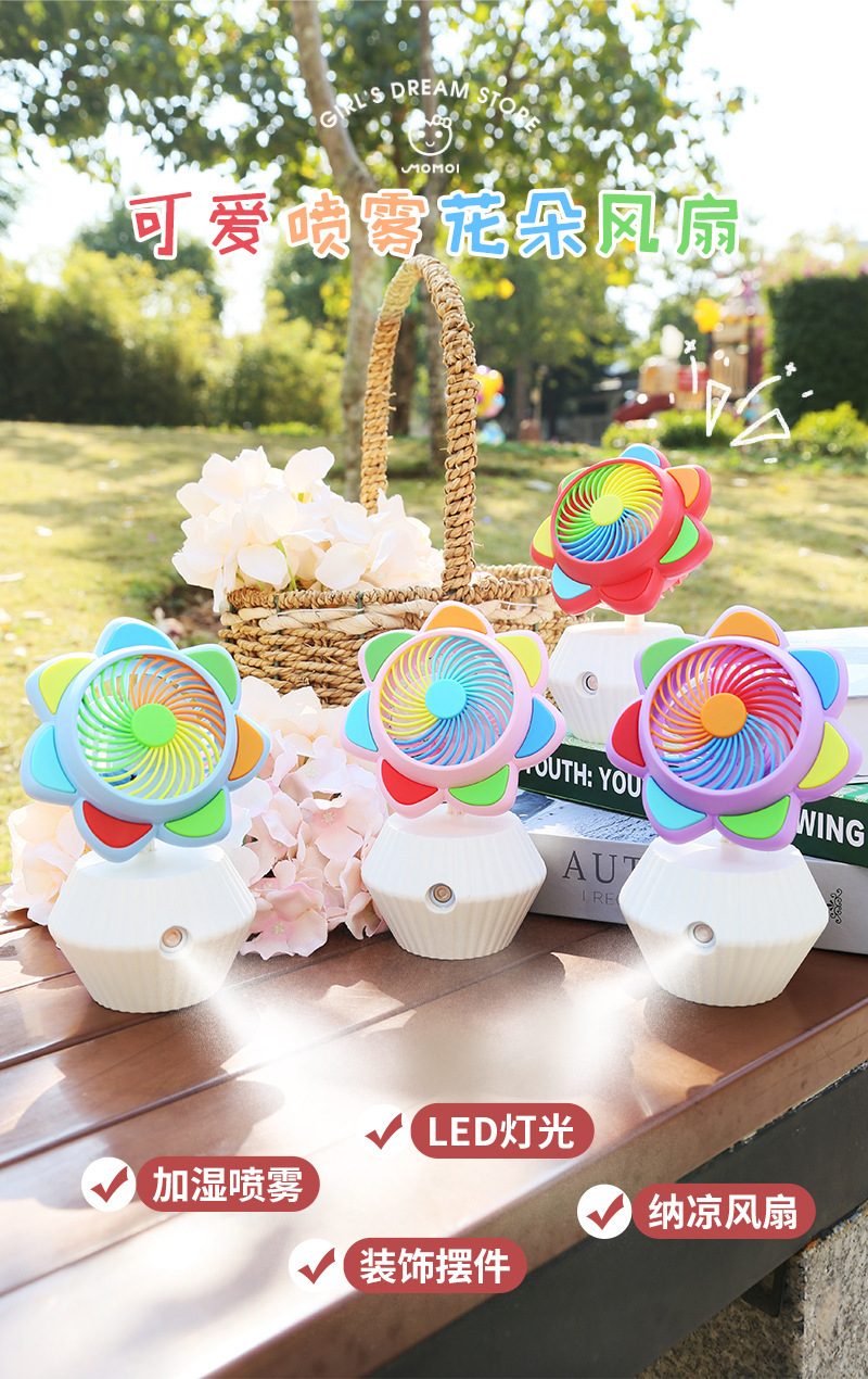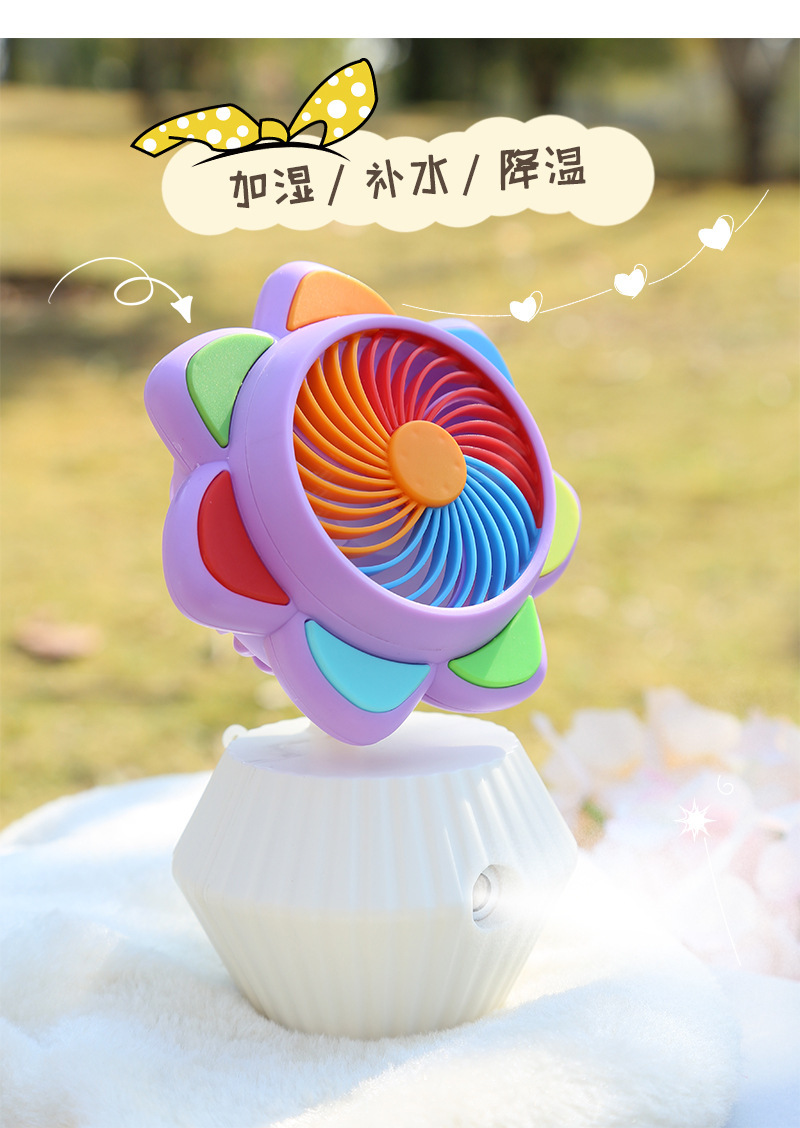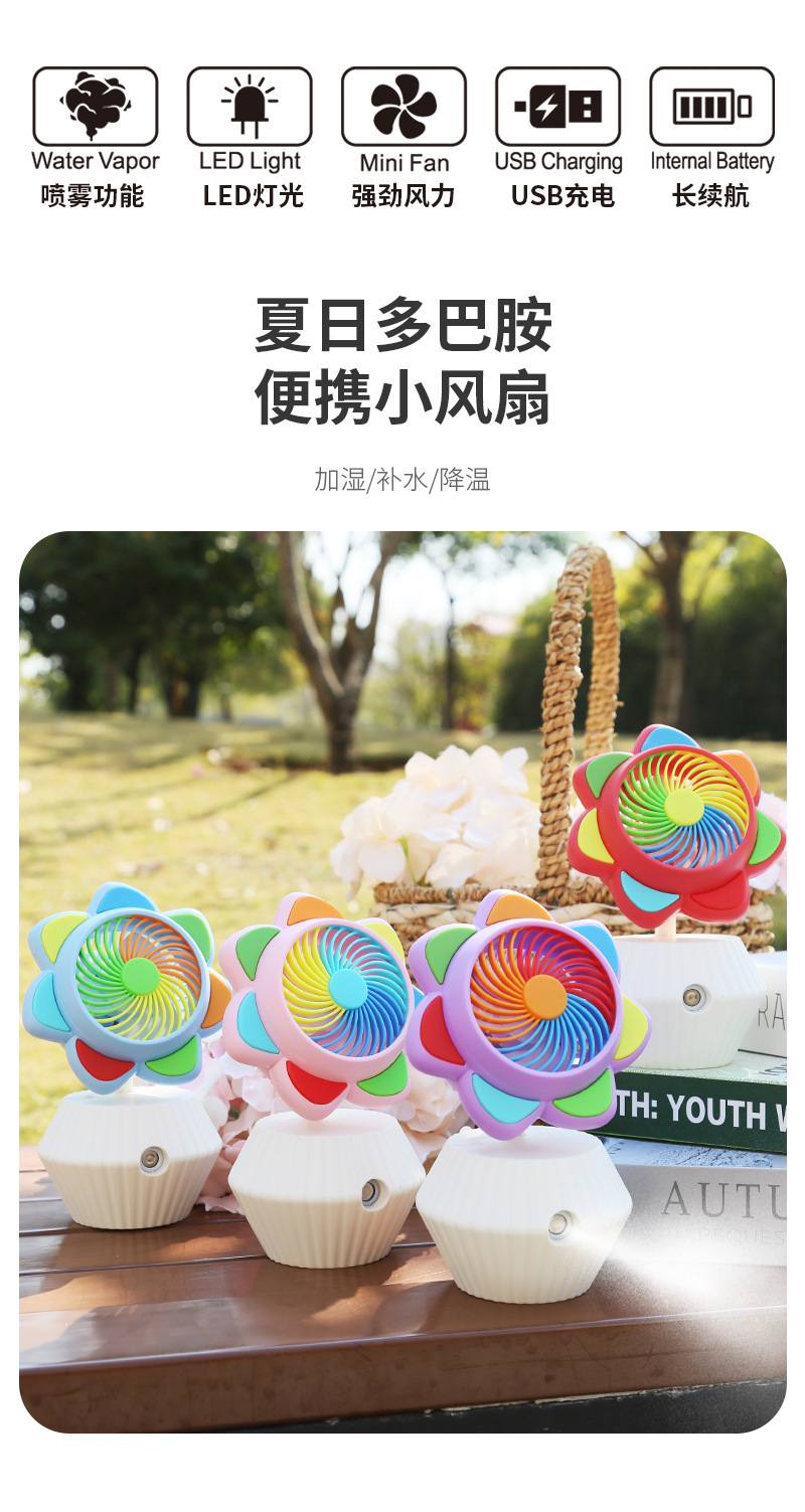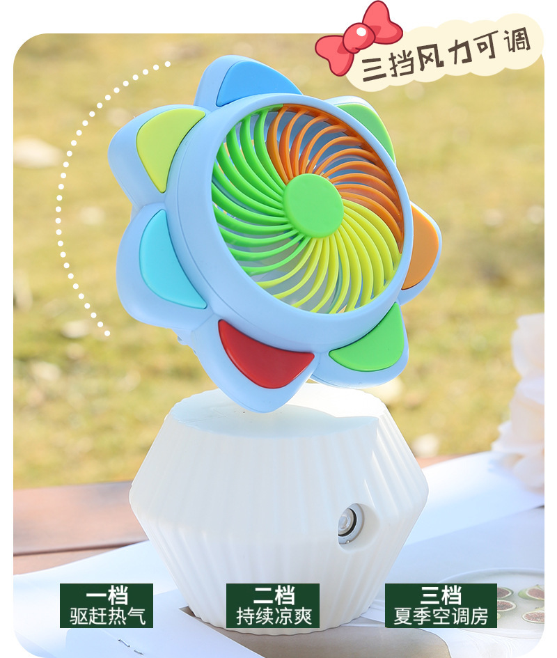 手持电风扇太阳花喷雾风扇简约高颜值迷你风扇可爱便携立式小风扇