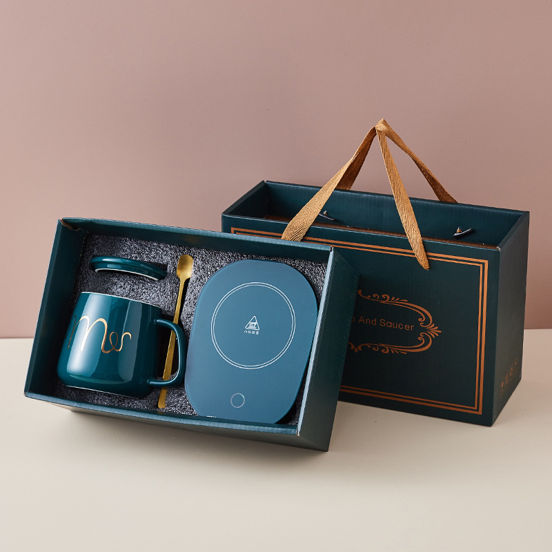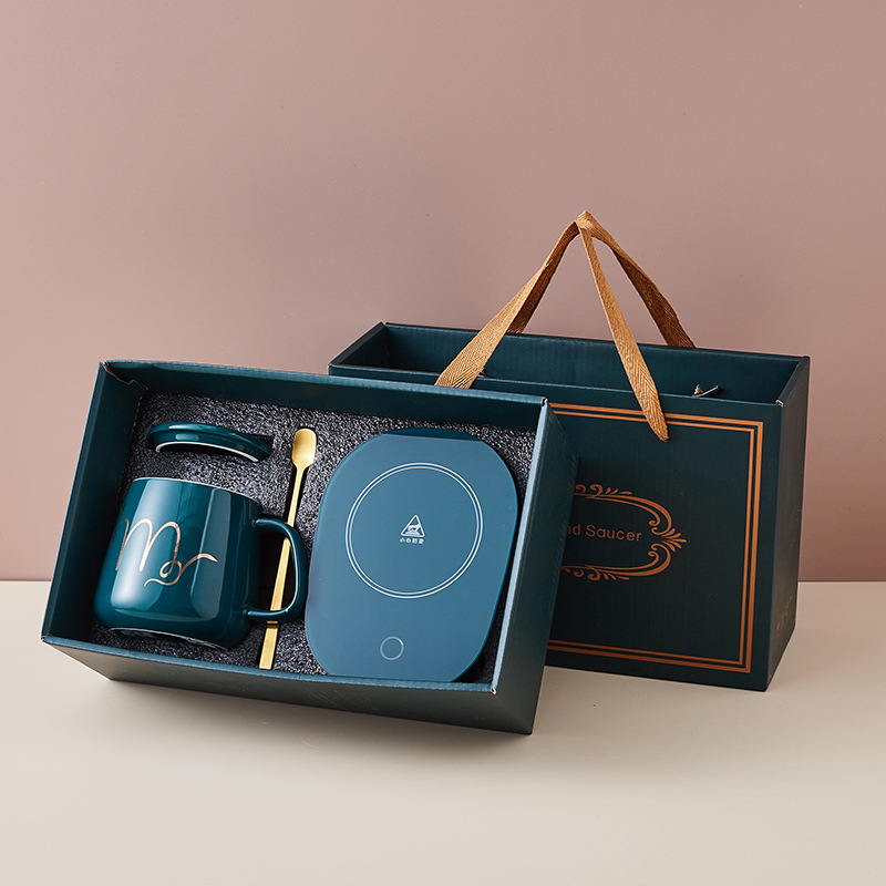 蒂范陶瓷暖暖杯恒温杯垫马克杯跨境礼品套装牛奶杯55度杯批发跨境