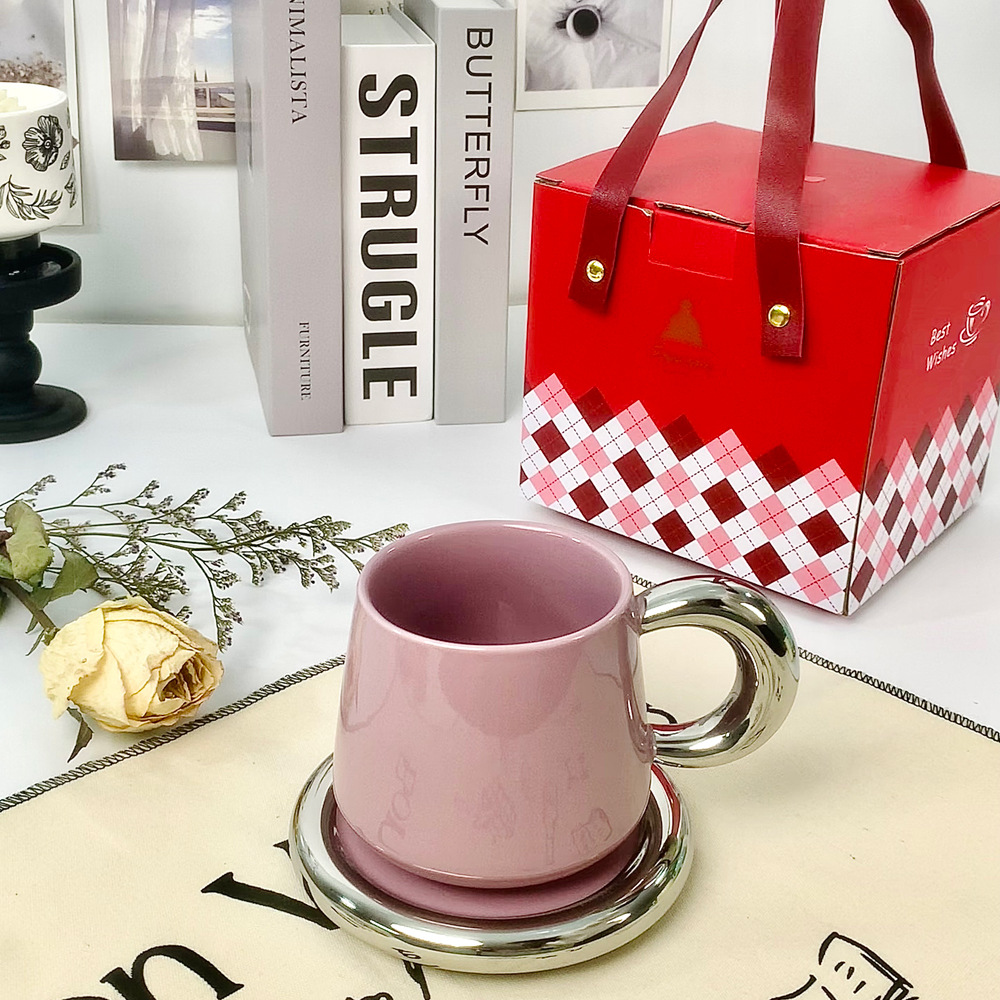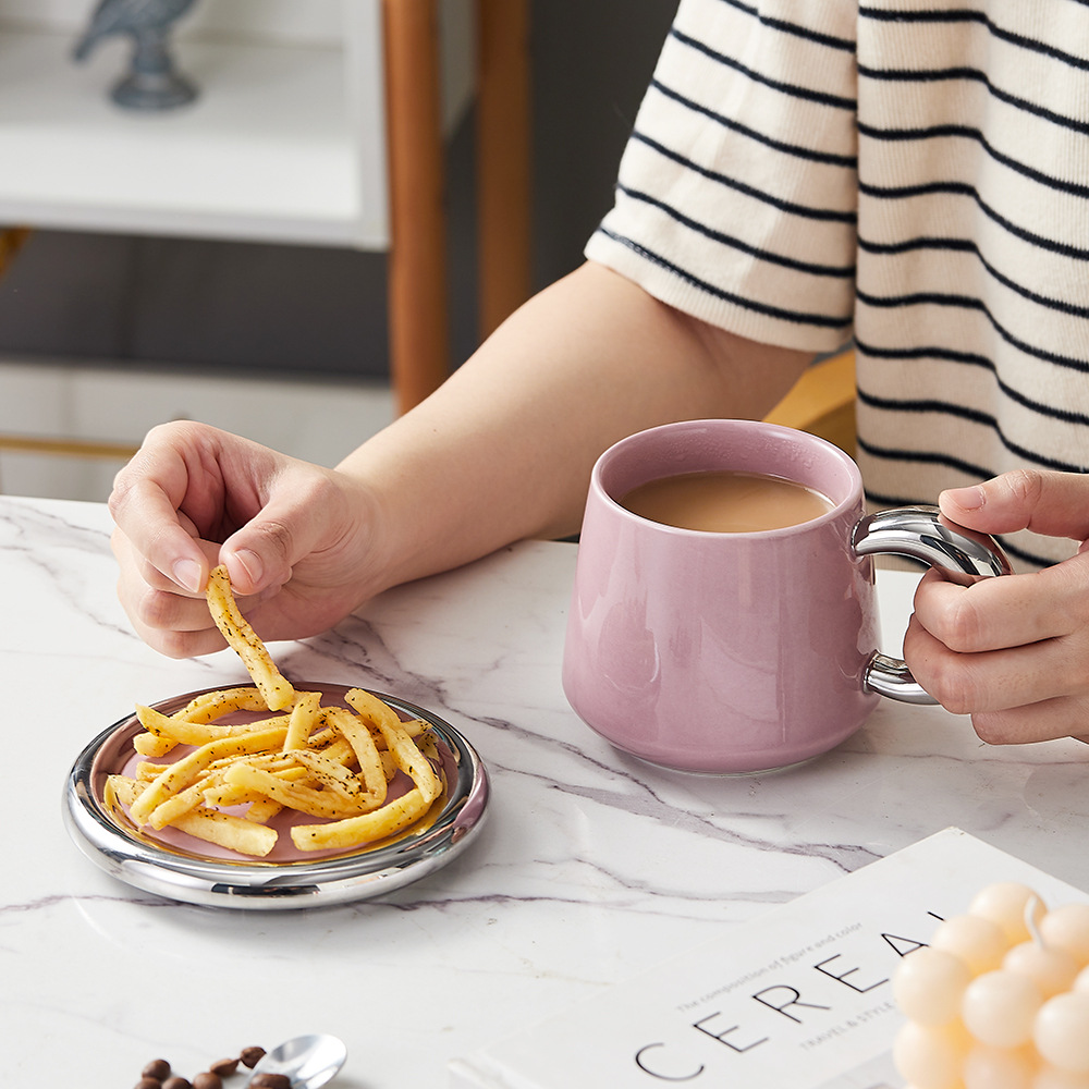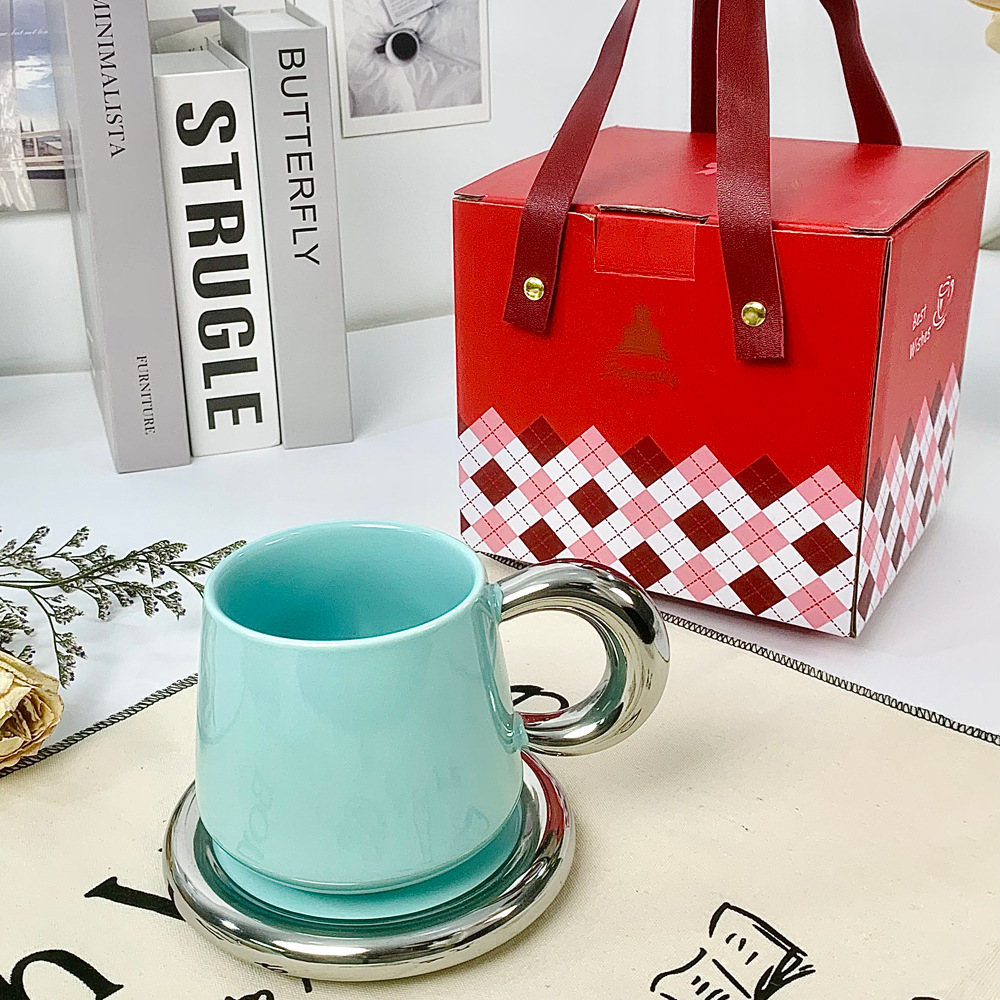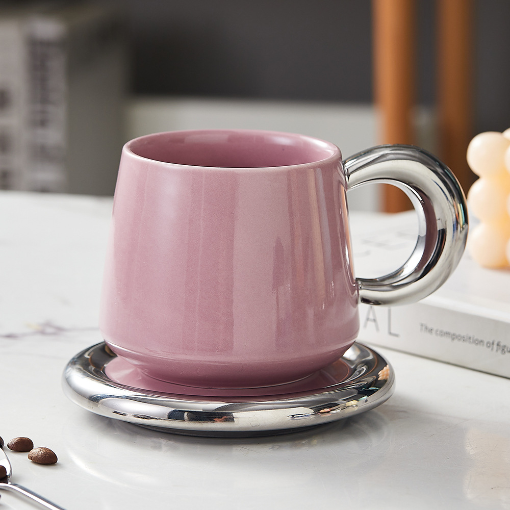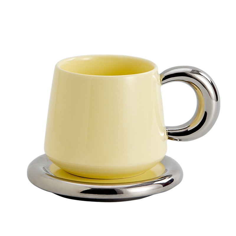蒂范北欧陶瓷杯碟镀银色创意马克杯办公咖啡杯碟跨境情侣杯礼盒装