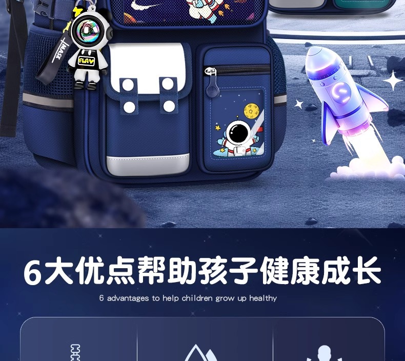 儿童书包1-3-6年级男童小学生书包大容量减负宇航员双肩背包批发
