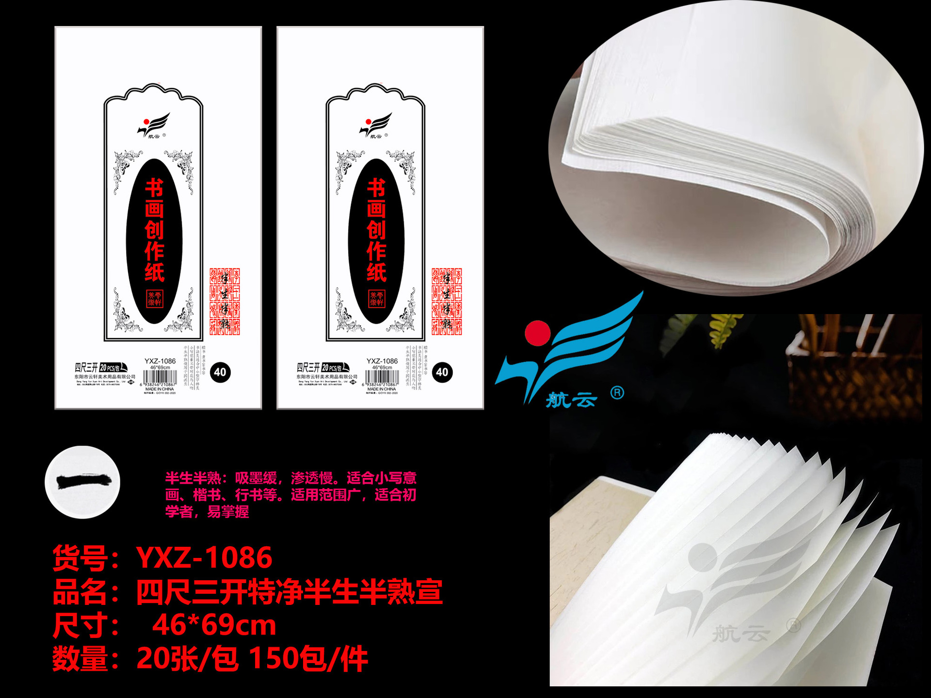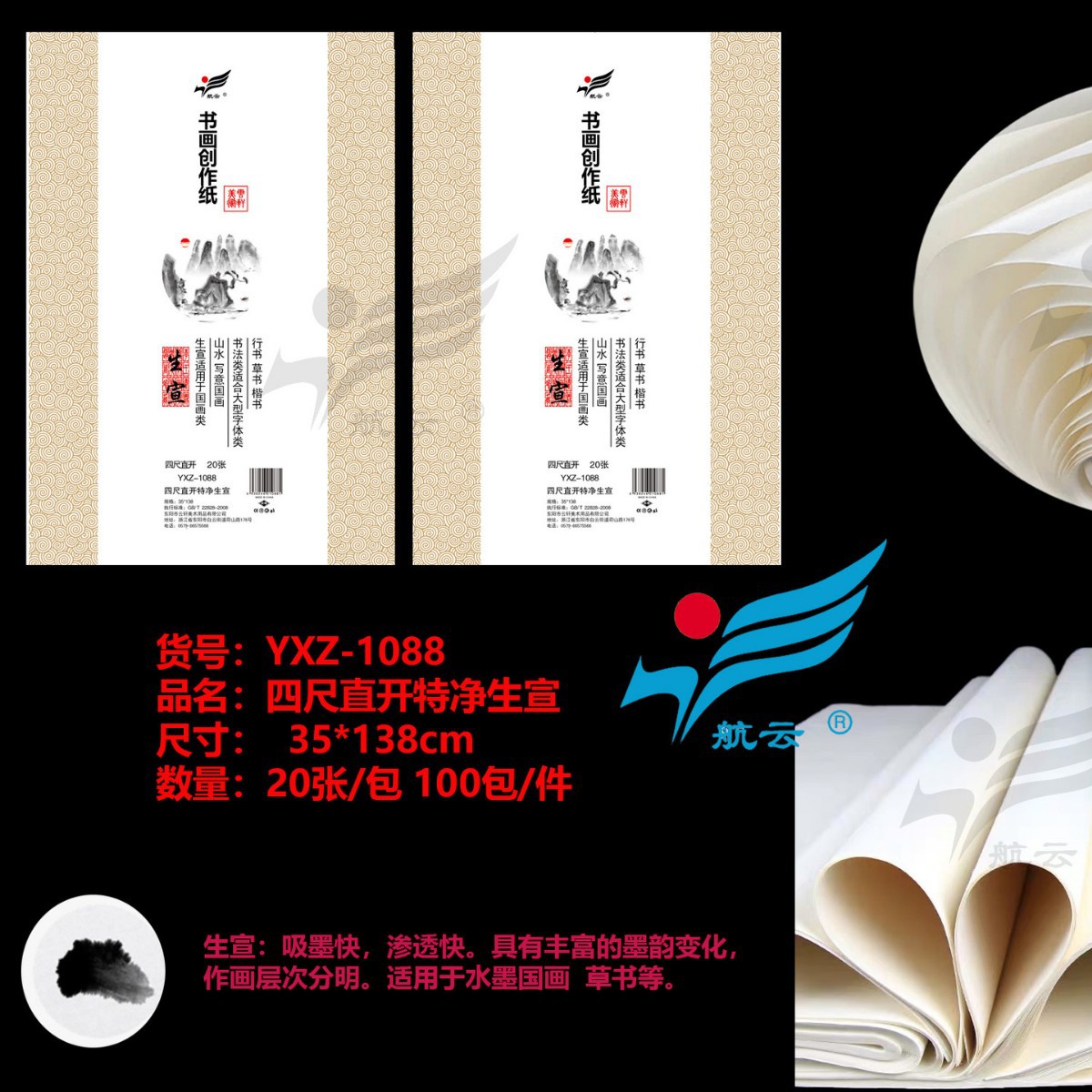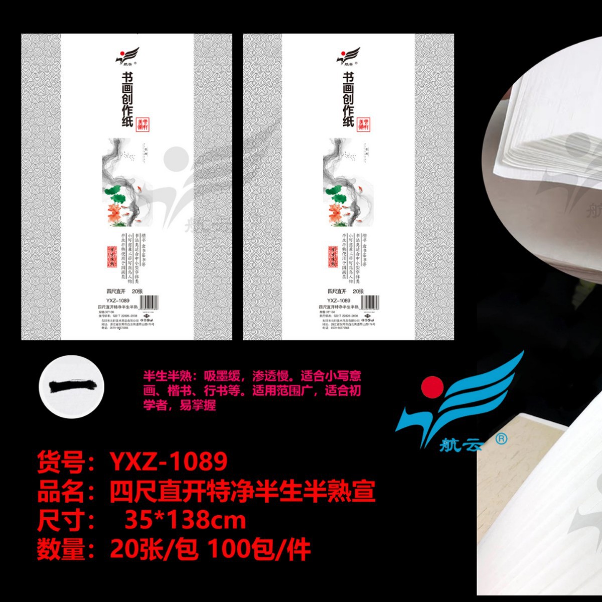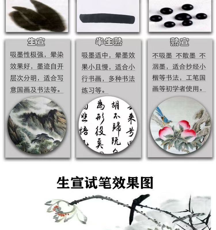 4k8k高级书画宣纸学生初学者培训教学毛笔绘画国画练习半生宣熟宣
