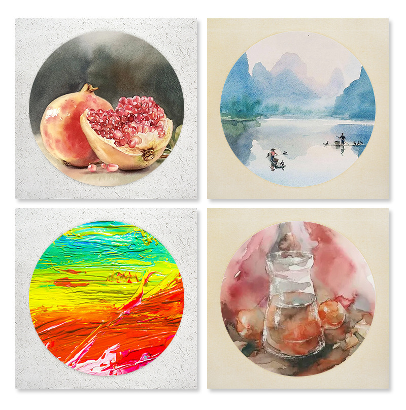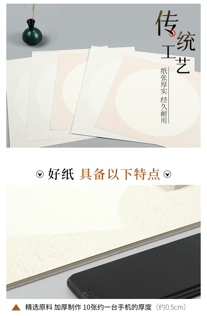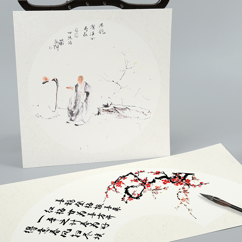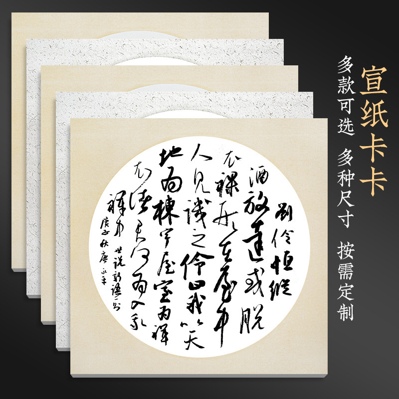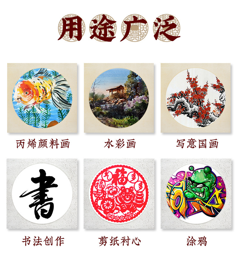 批发手工宣纸卡纸半生熟仿古圆形书法麻纸空白山水画国画扇面卡纸