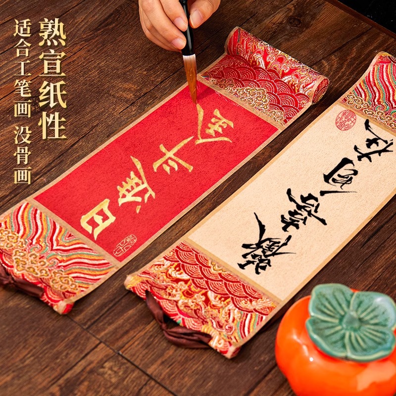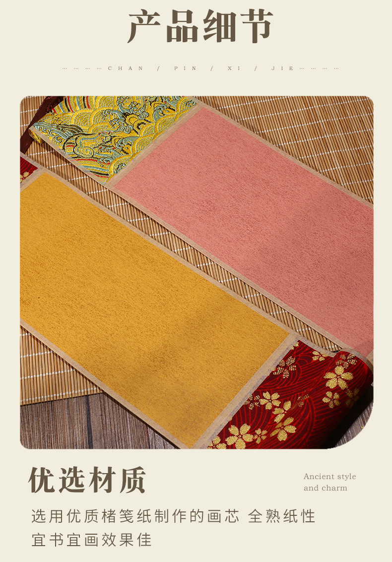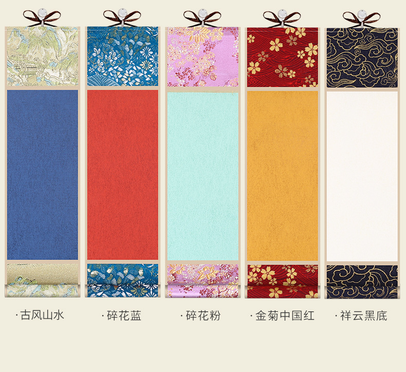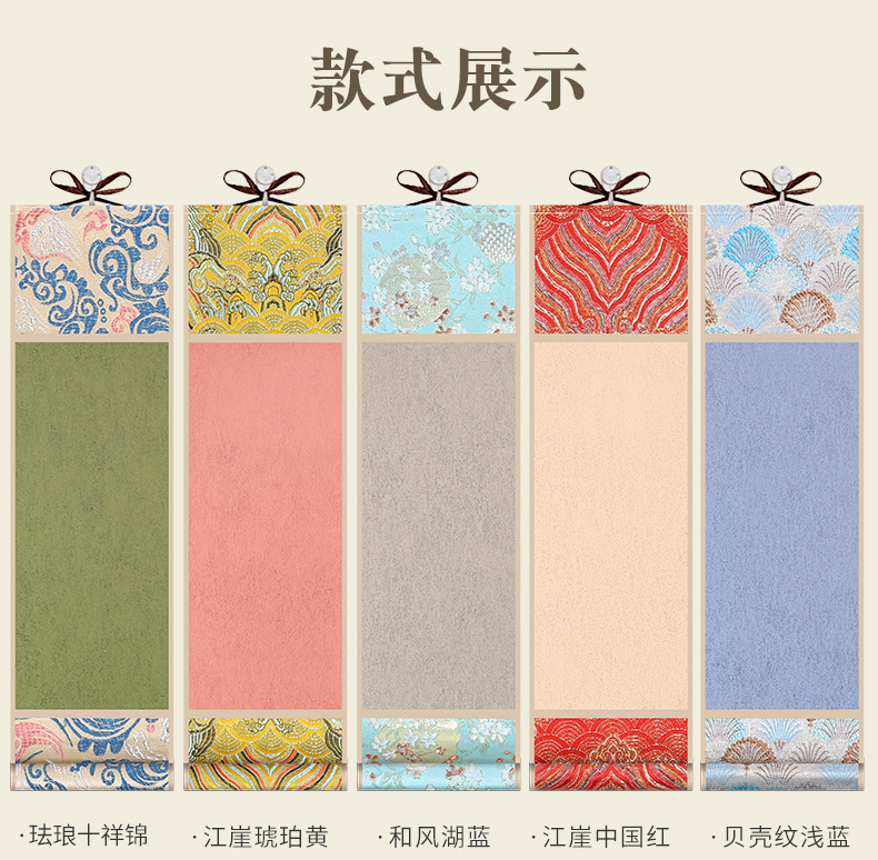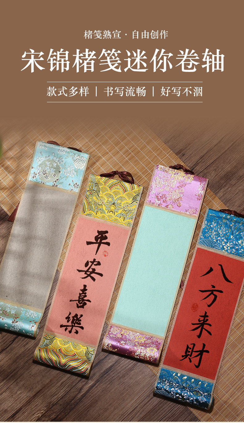 迷你卷轴宋锦楮笺挂轴宣纸空白卷轴手卷创意国画专用书法文创挂件