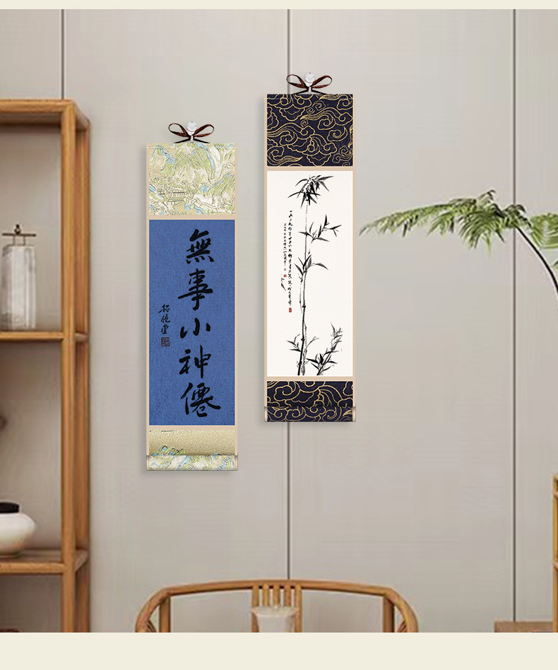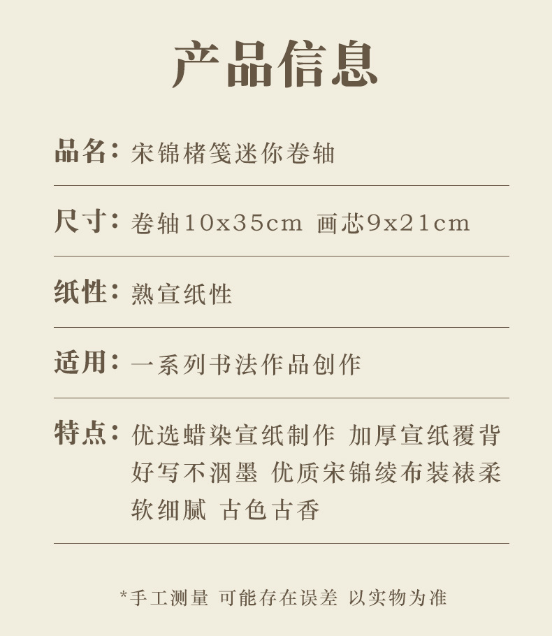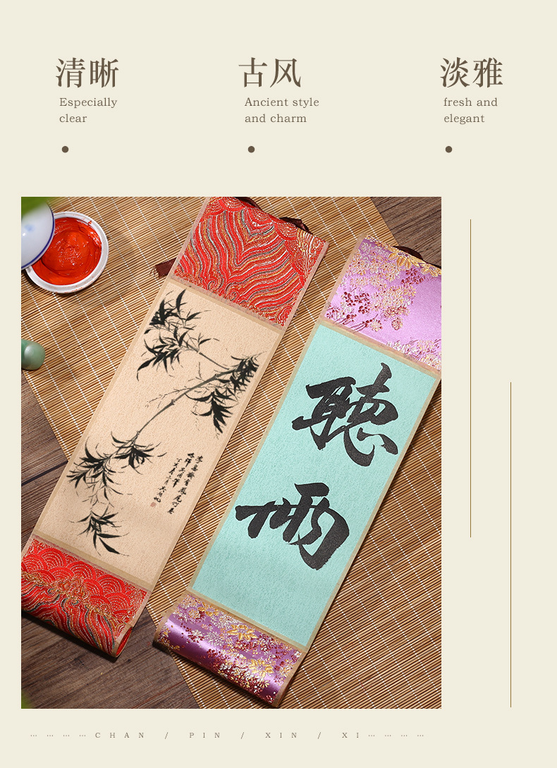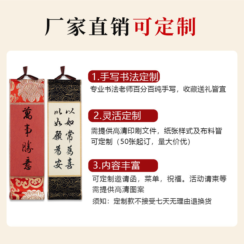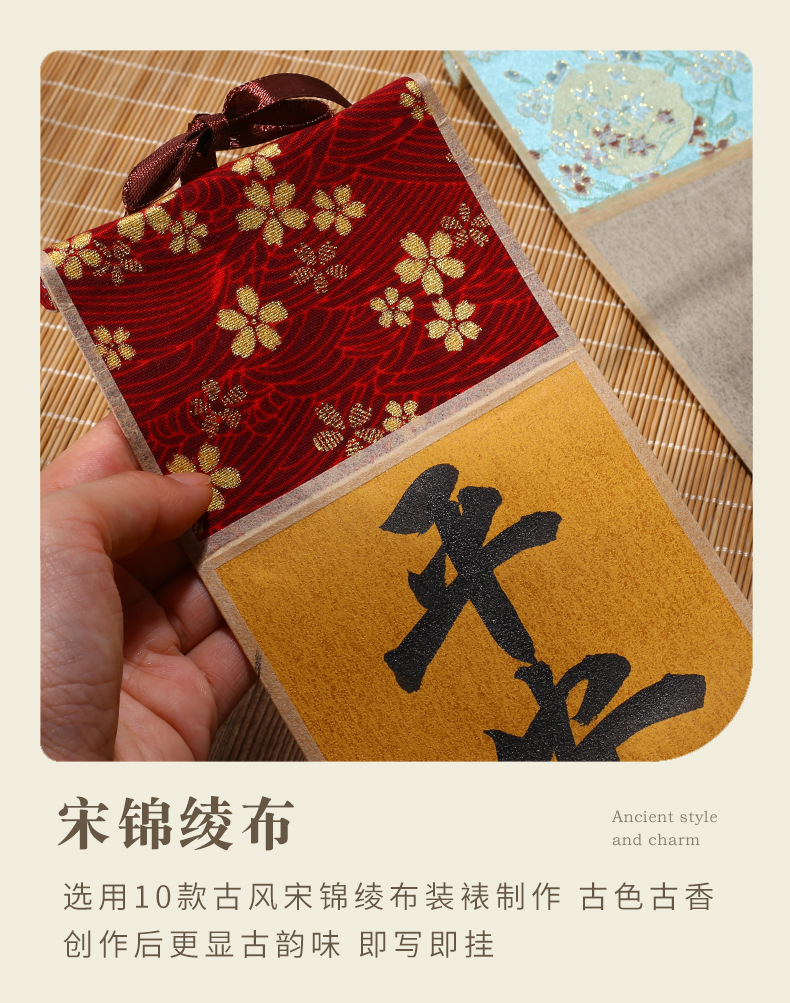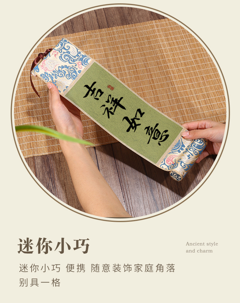 迷你卷轴宋锦楮笺挂轴宣纸空白卷轴手卷创意国画专用书法文创挂件
