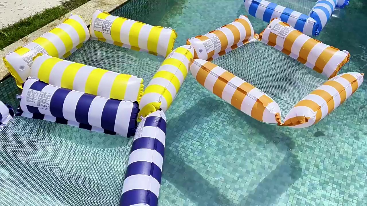 跨境现货游泳池充气浮排可折叠条纹浮床水上游乐吊床单人躺椅浮排