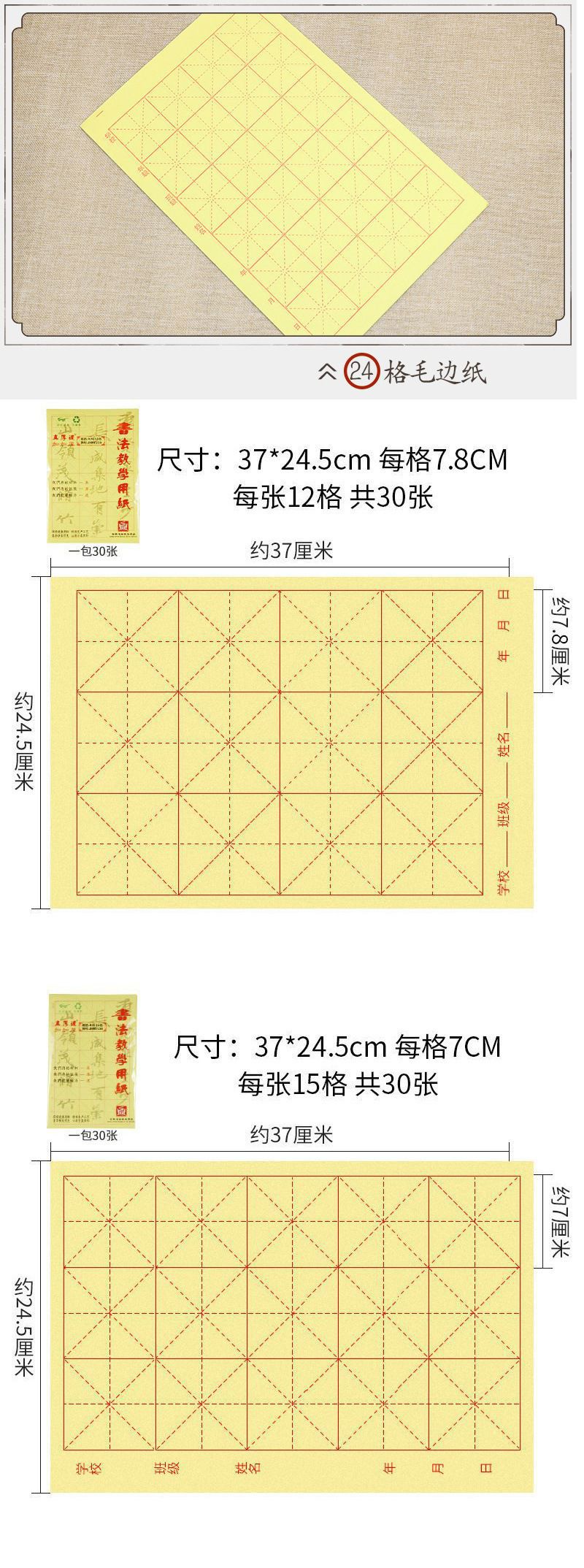 书法毛边纸8开12格7.5*7.5厘米毛笔纸八开十二格子加厚宣纸15米格