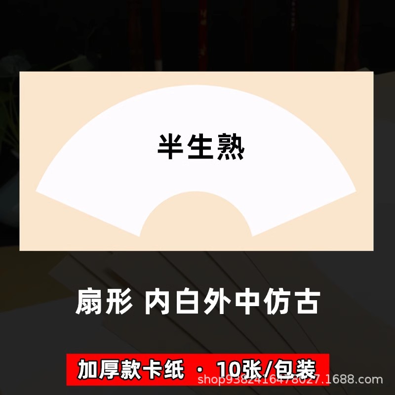 加厚宣纸半生熟卡纸书法国画硬卡宣纸圆形镜片扇形扇面硬卡熟宣卡