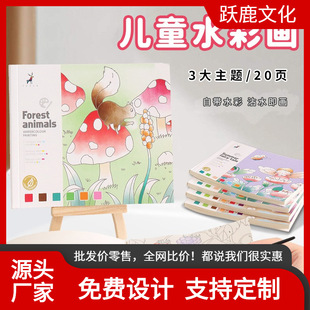 水彩涂色便签本画纸儿童自带颜料填色水粉画画本DIY解压图画本