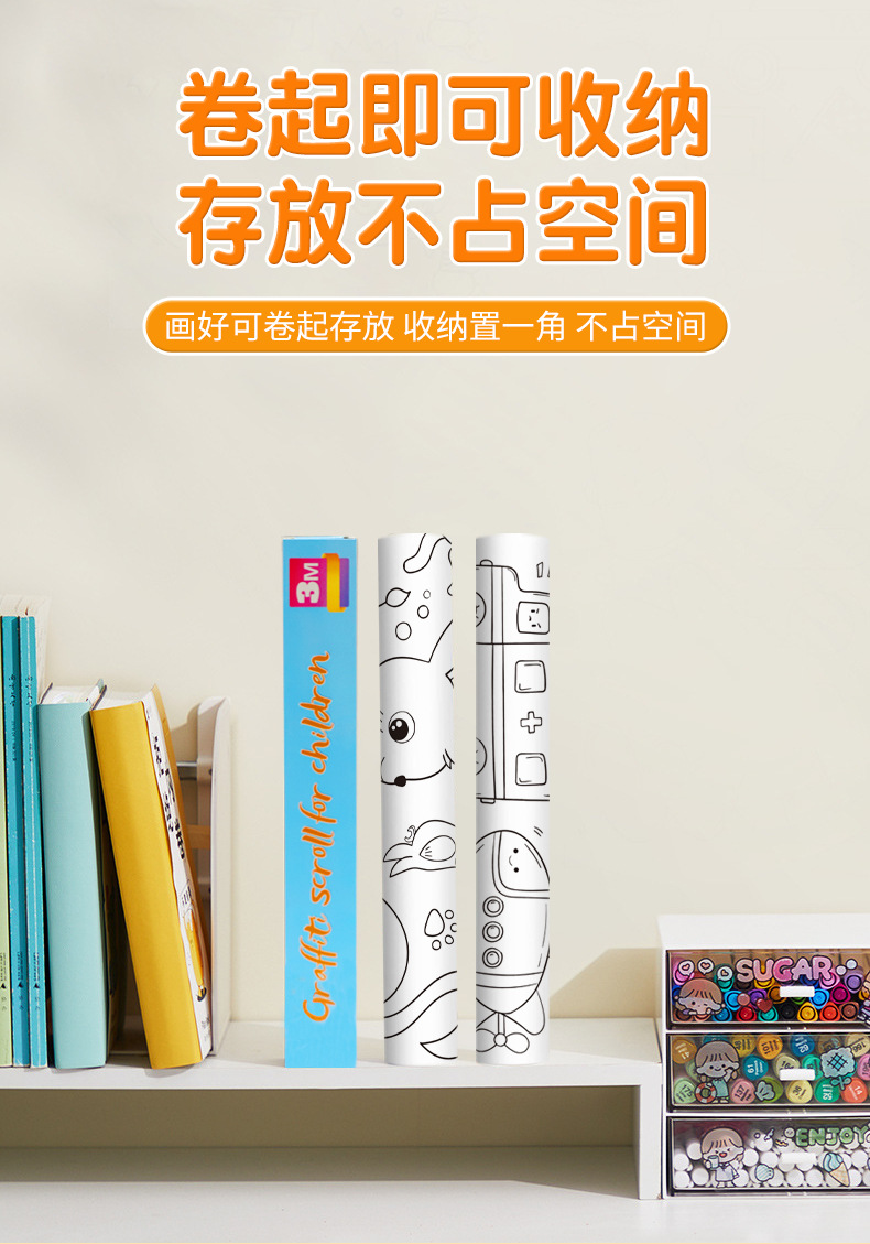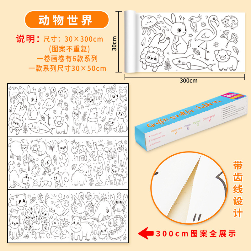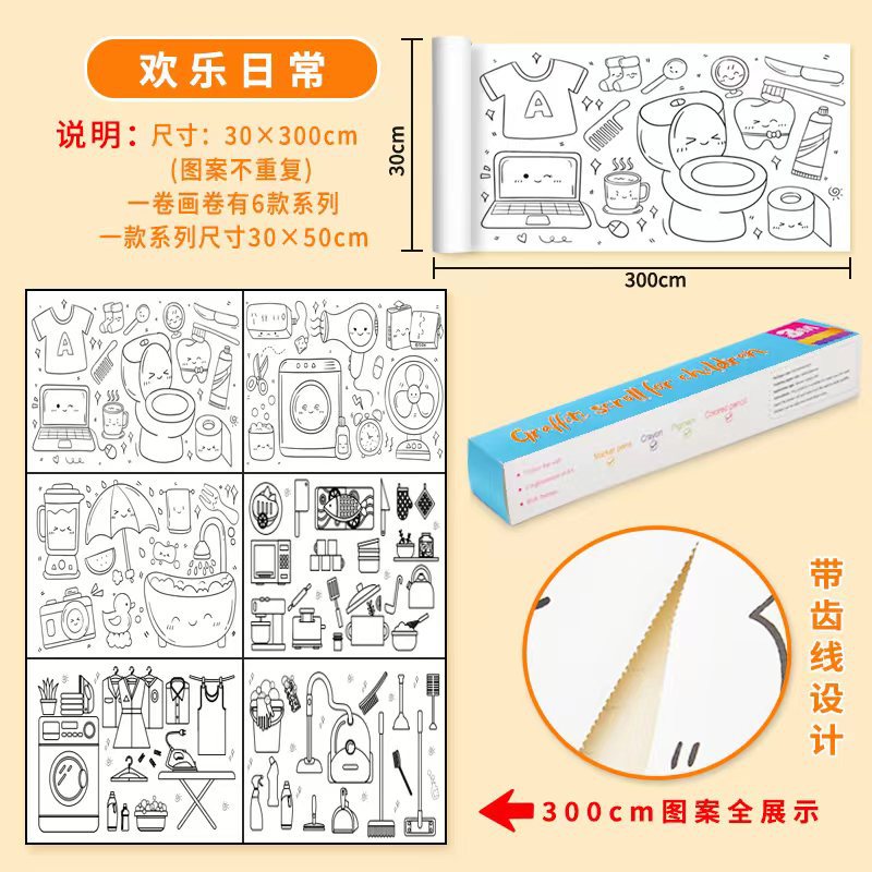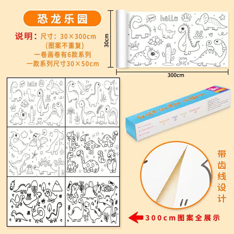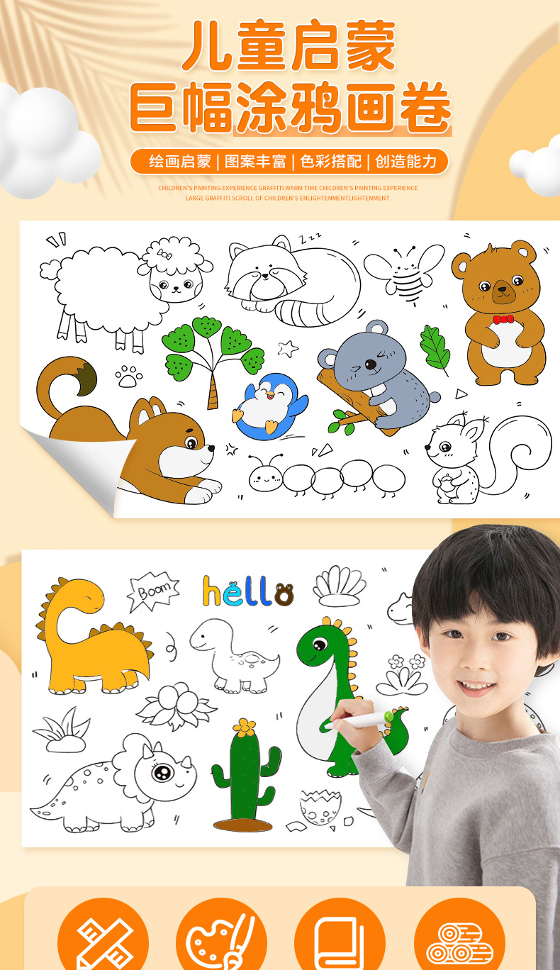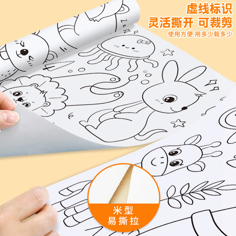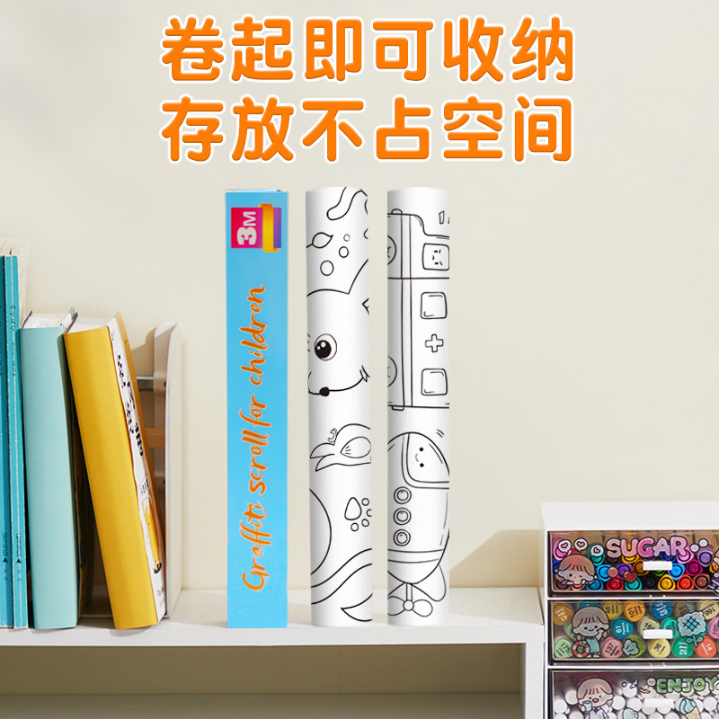 3米超长儿童涂鸦画卷幼儿园宝宝填色绘画画布不脏墙可粘贴画纸