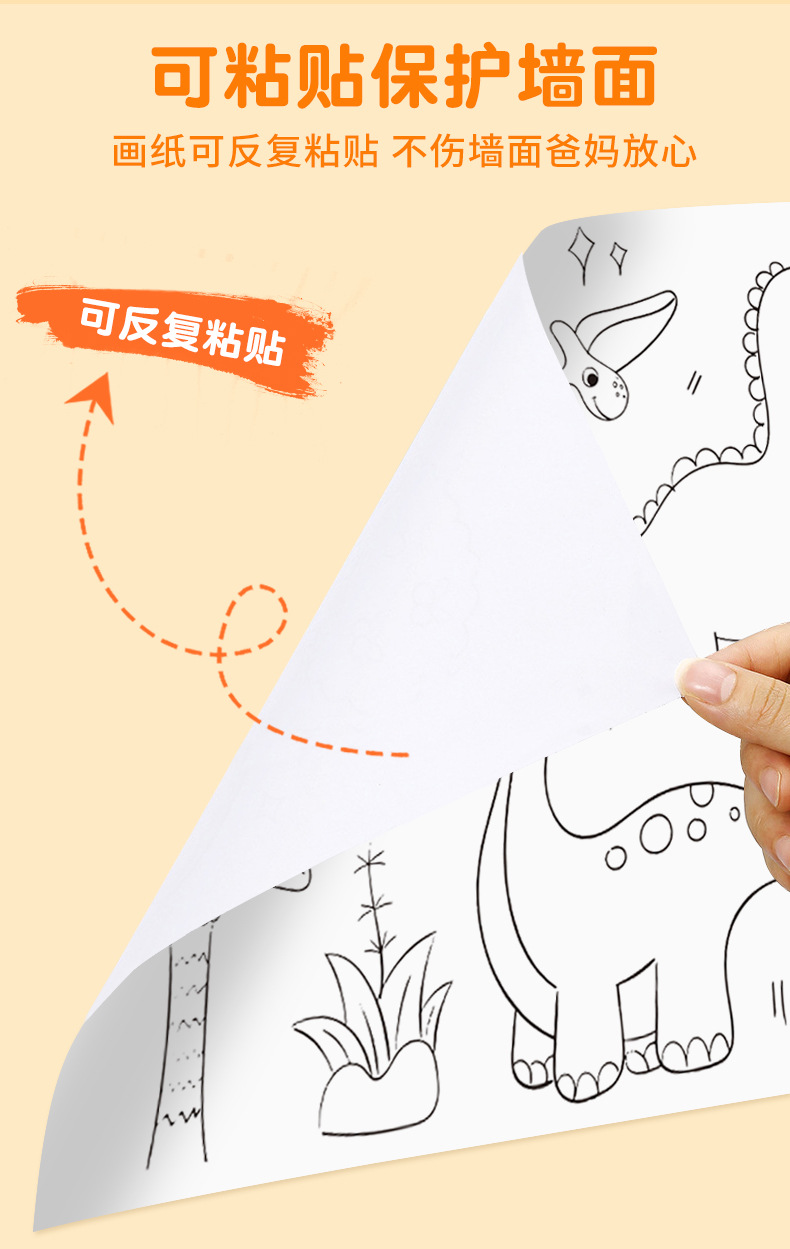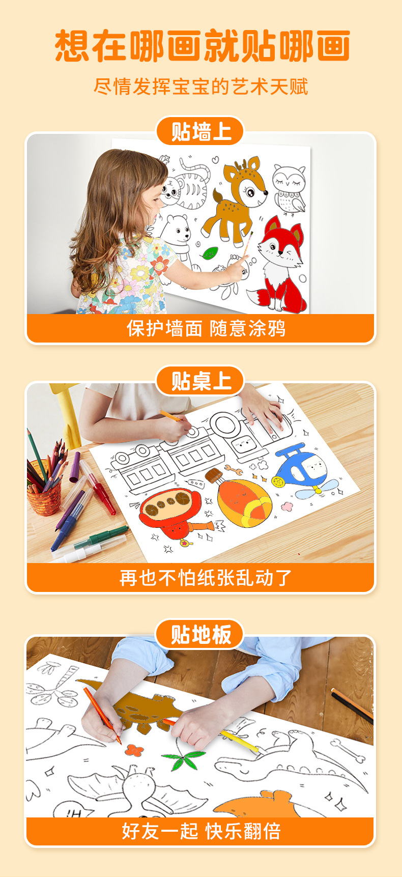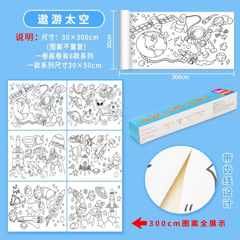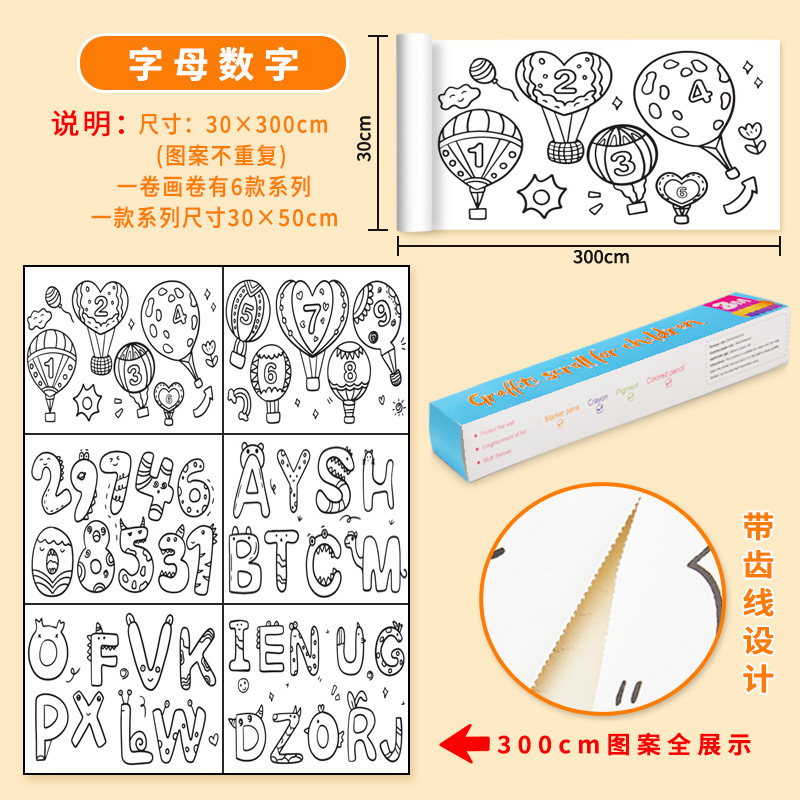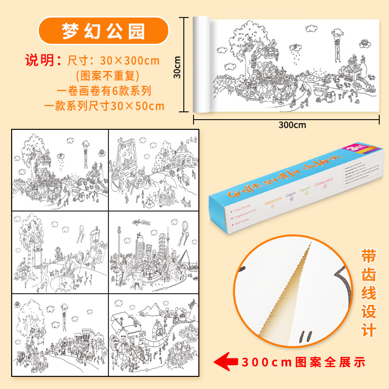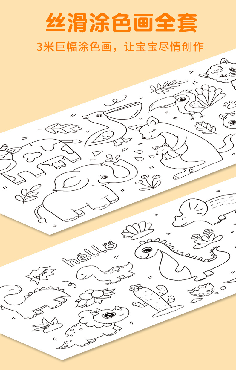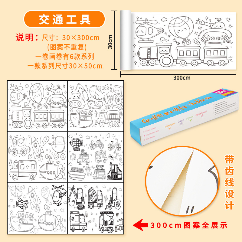 3米超长儿童涂鸦画卷幼儿园宝宝填色绘画画布不脏墙可粘贴画纸