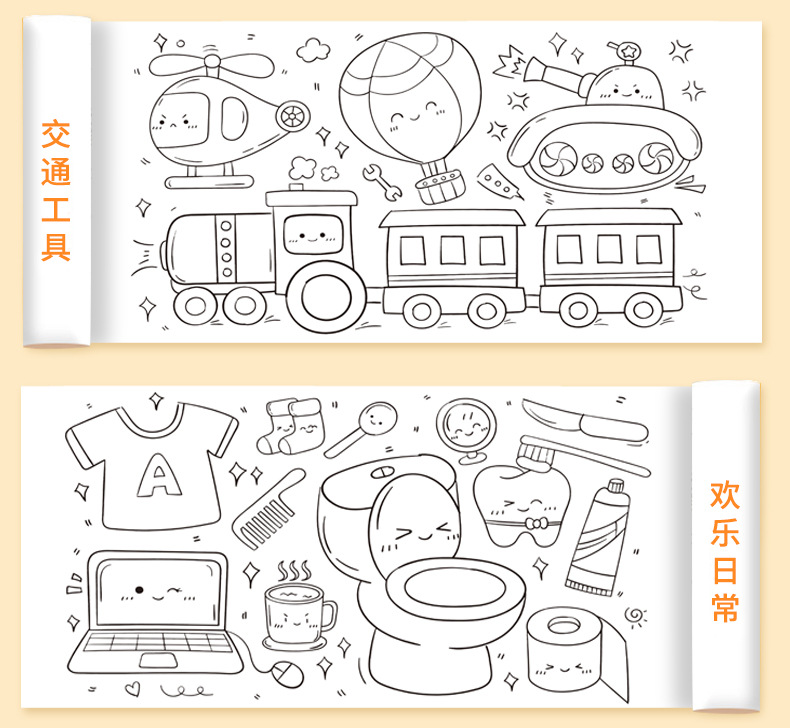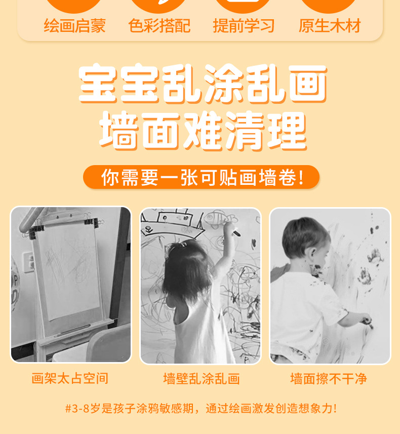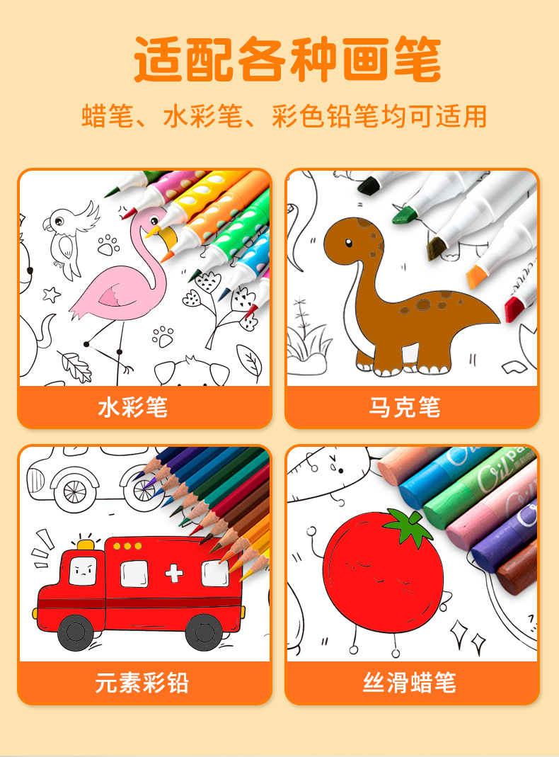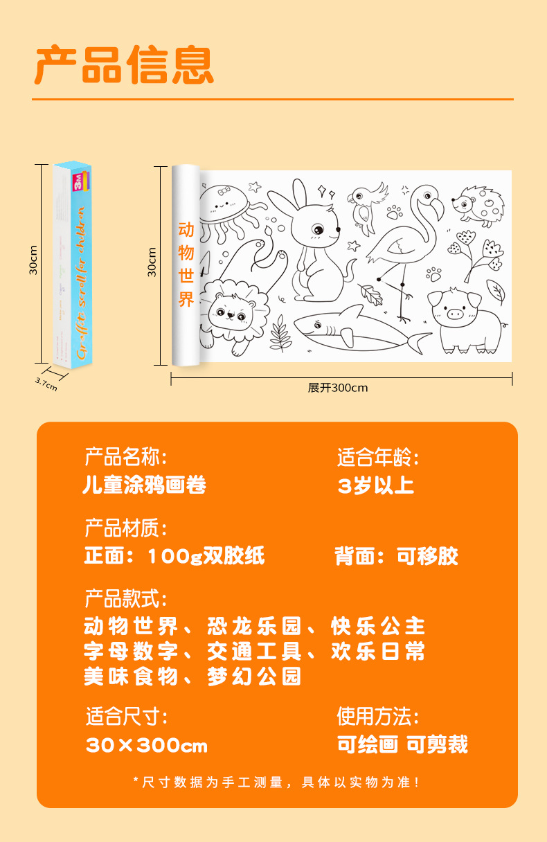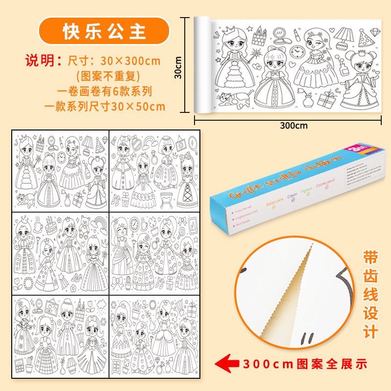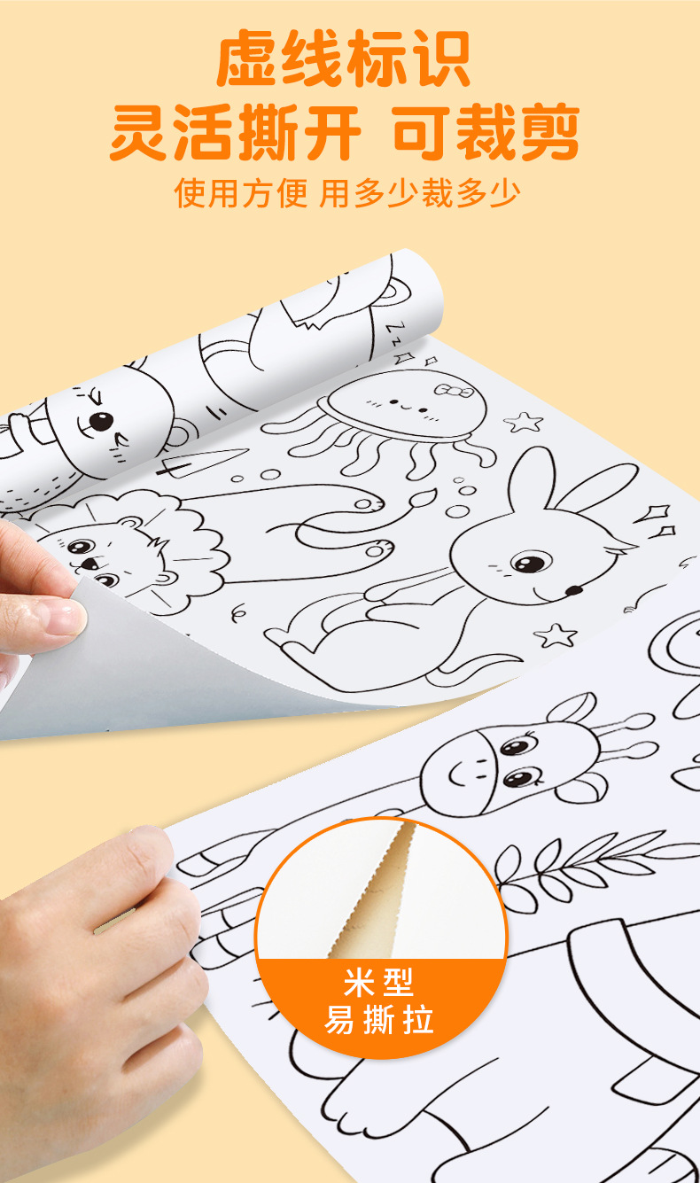 3米超长儿童涂鸦画卷幼儿园宝宝填色绘画画布不脏墙可粘贴画纸