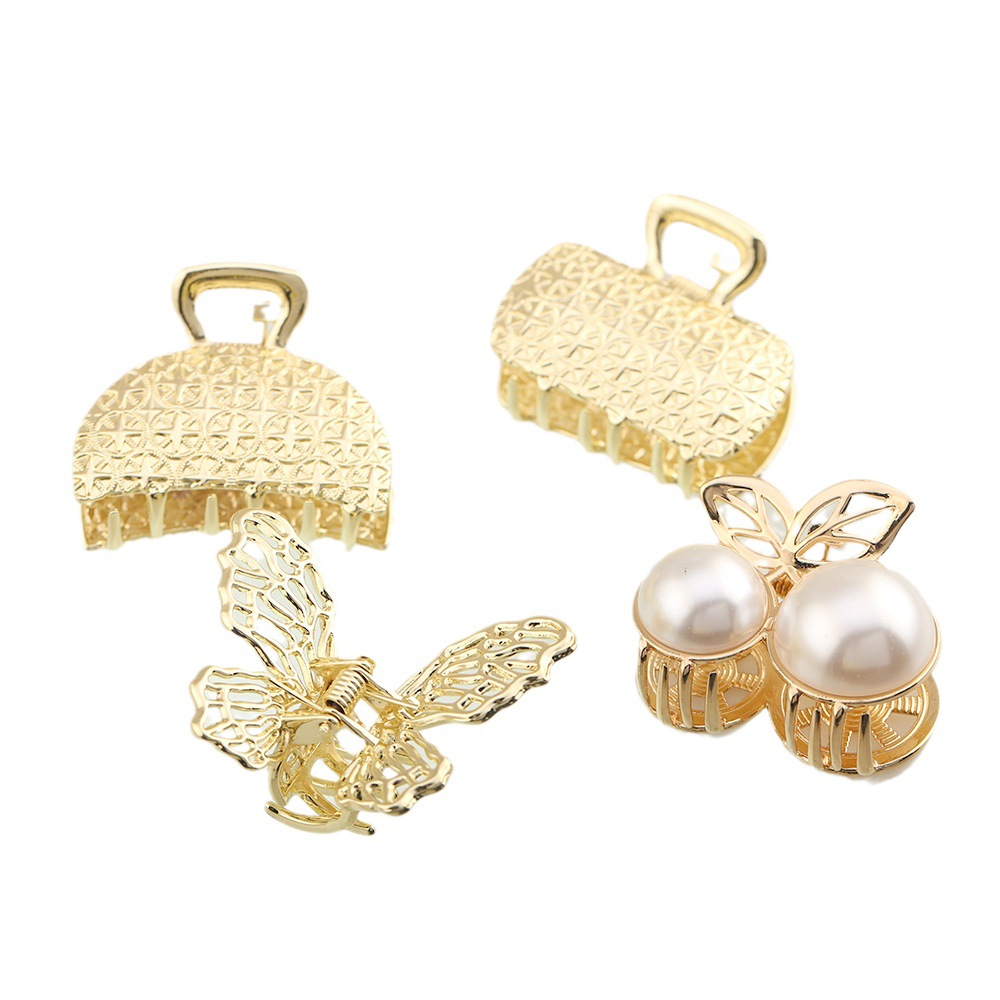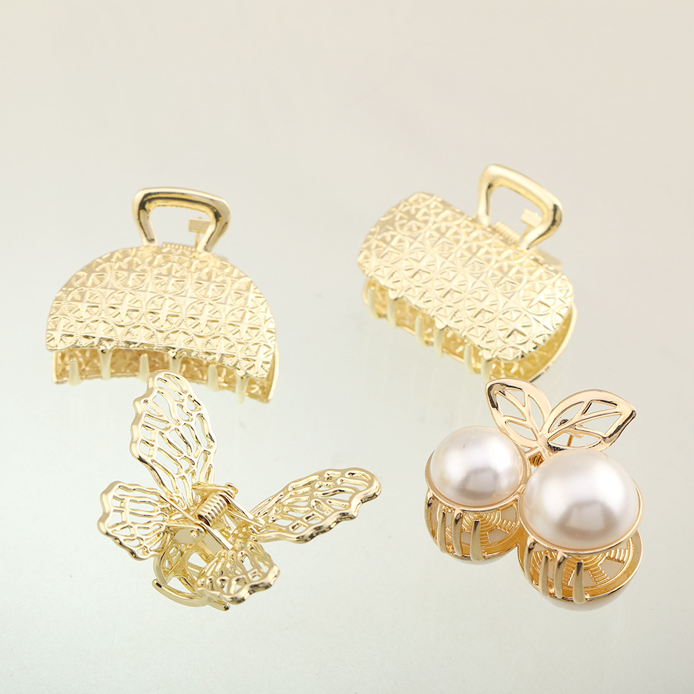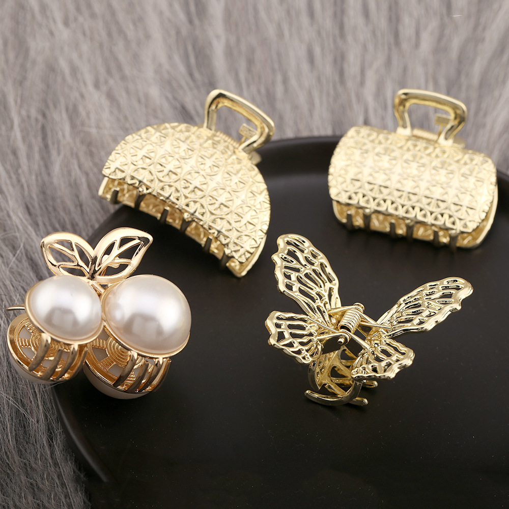 珍珠樱桃发夹侧边可爱后脑勺半扎发儿童小号蝴蝶迷你抓夹头饰