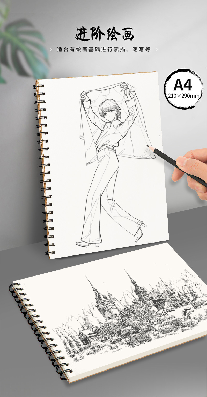 专业素描本A4 8k 16k学生专用美术图画线圈本便携绘画速写本批发