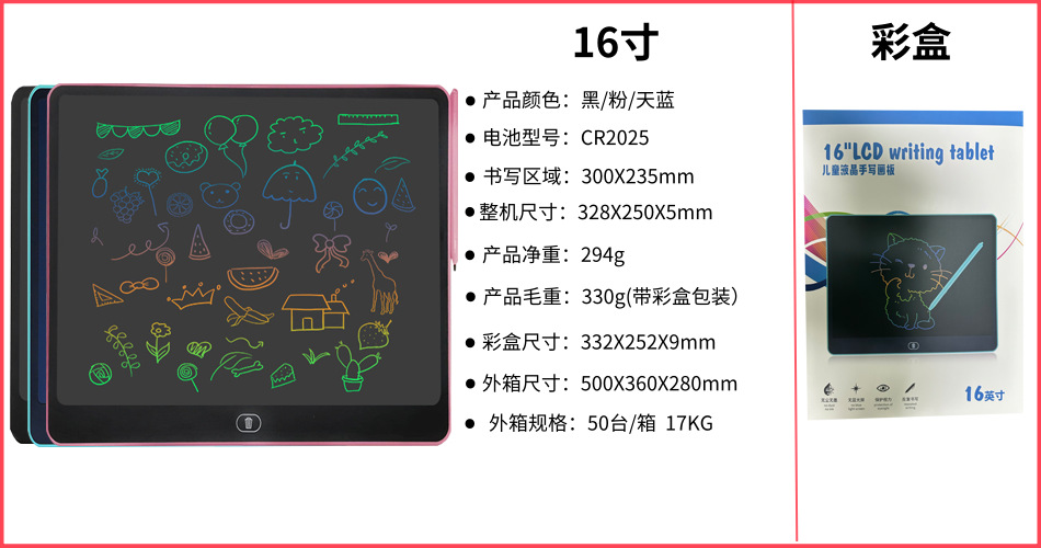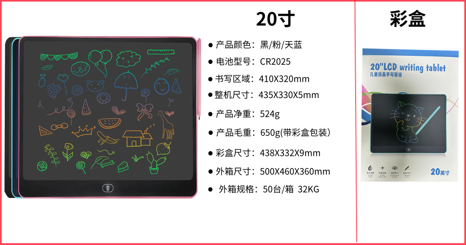 16/20英寸液晶手写板儿童涂鸦板绘画板商务小黑板超大屏LCD写字板