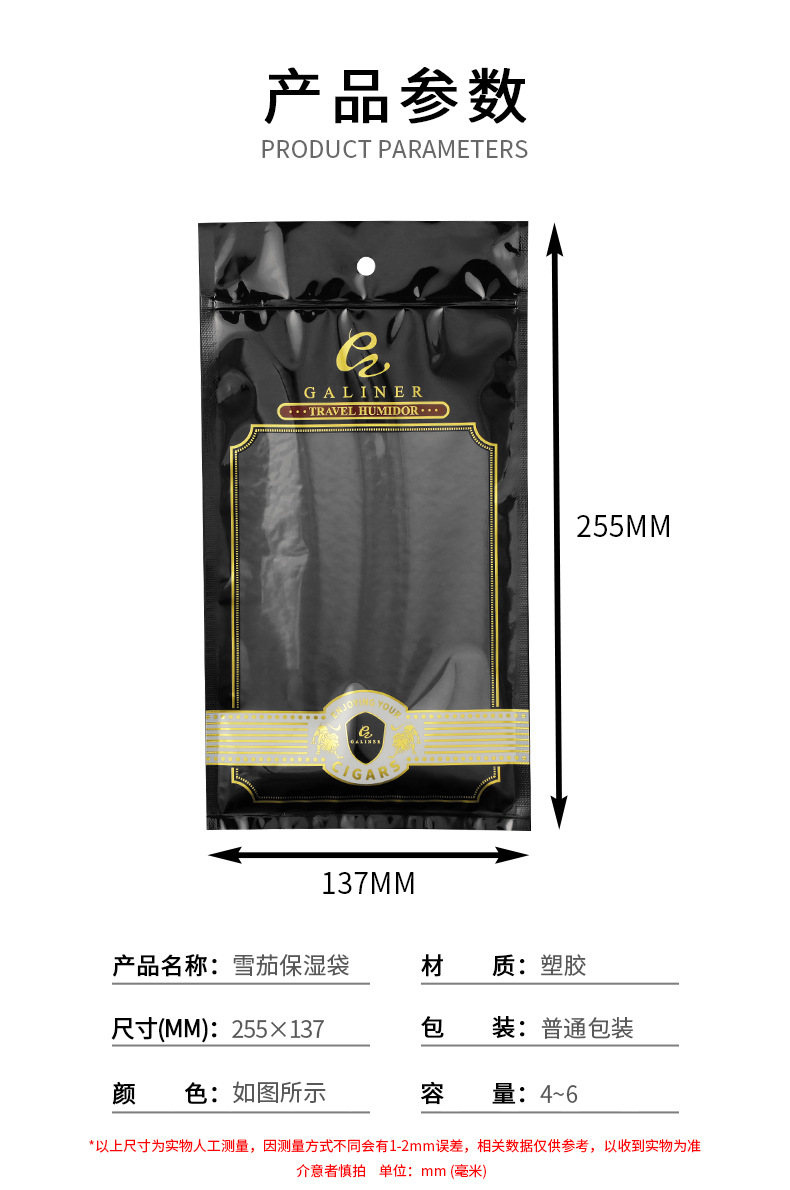 GALINER雪茄保湿袋密封存储加湿袋烟具保湿专用便携透明袋收纳袋