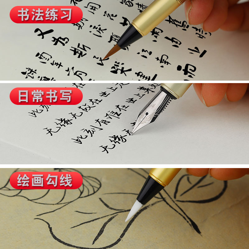 钢笔式毛笔自带墨钢笔礼盒套装便携狼毫小楷软笔抄经书法笔秀丽笔