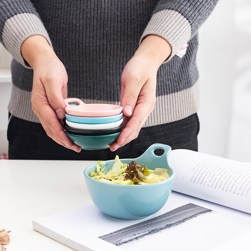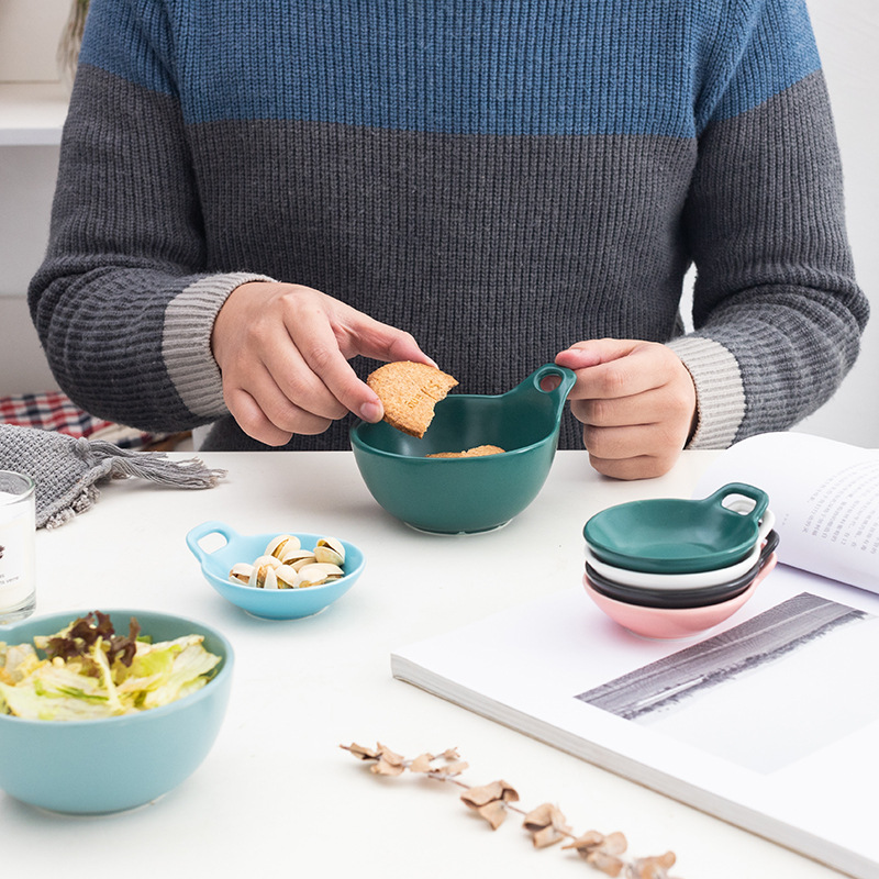 蒂范陶瓷碟沙拉小碗创意北欧酱料碟家用单柄亚光饭碗陶瓷餐具批发