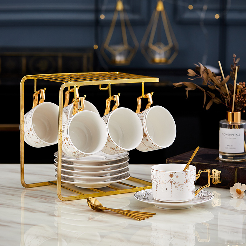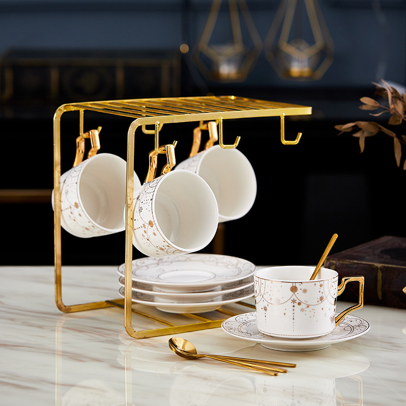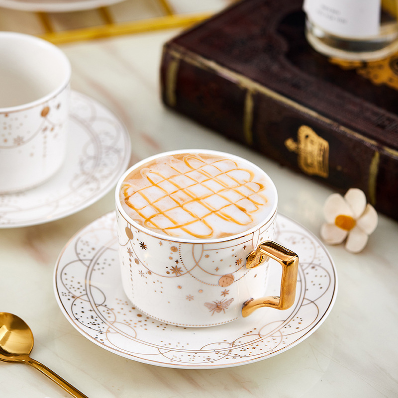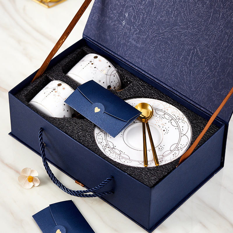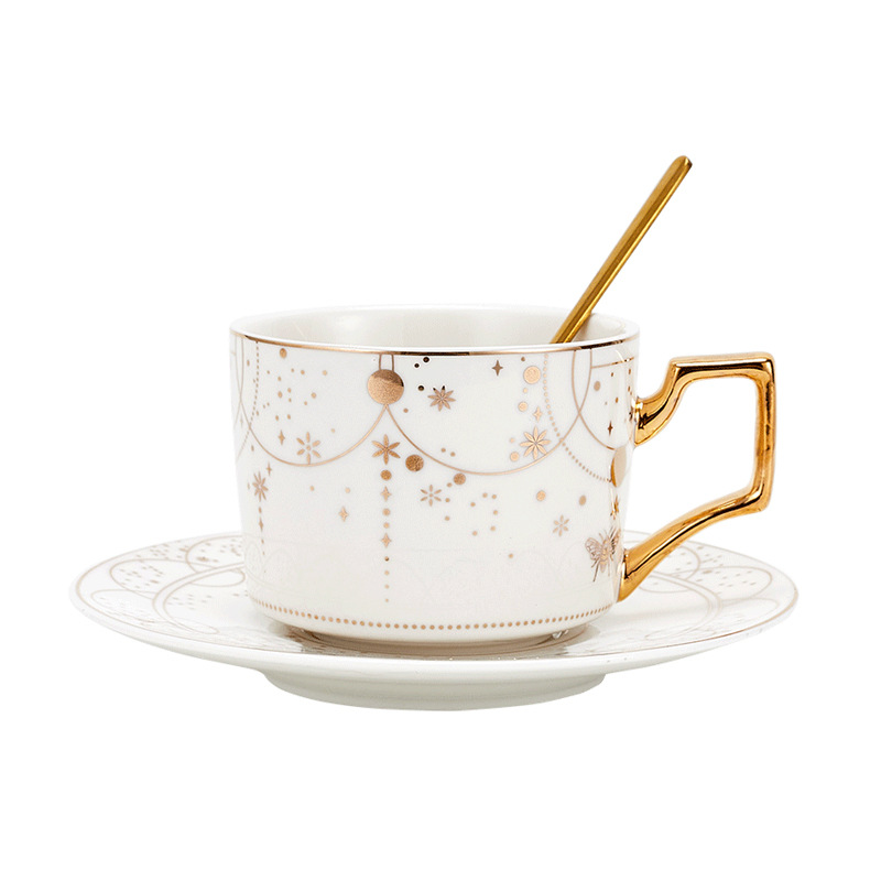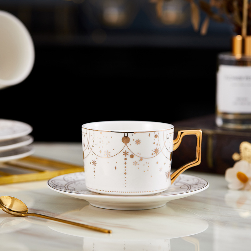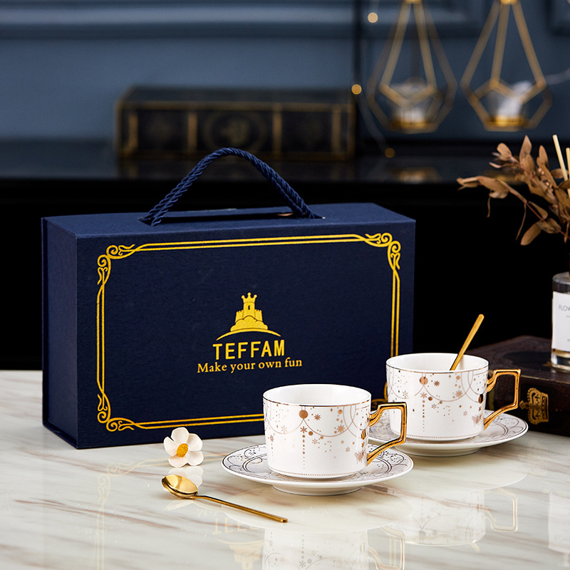 蒂范创意咖啡杯碟金边陶瓷杯子跨境礼盒装北美下午茶杯logo批发