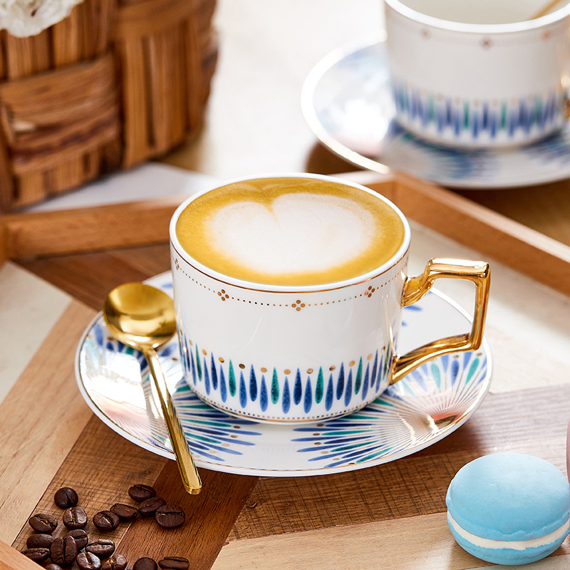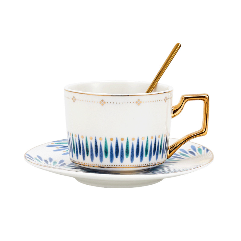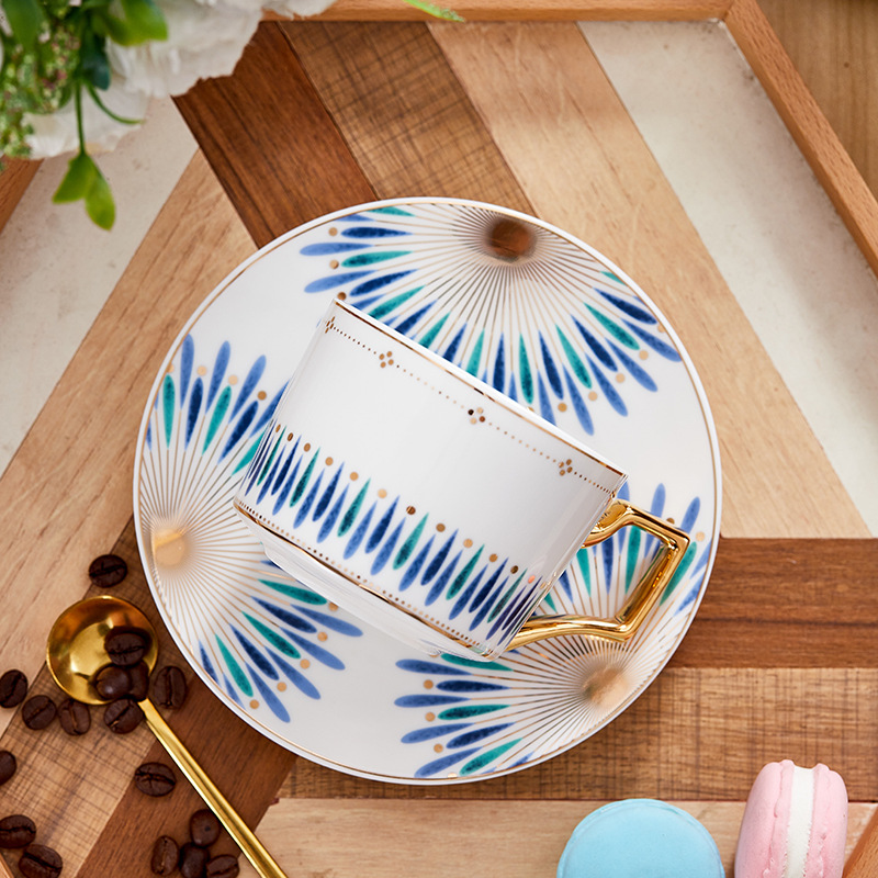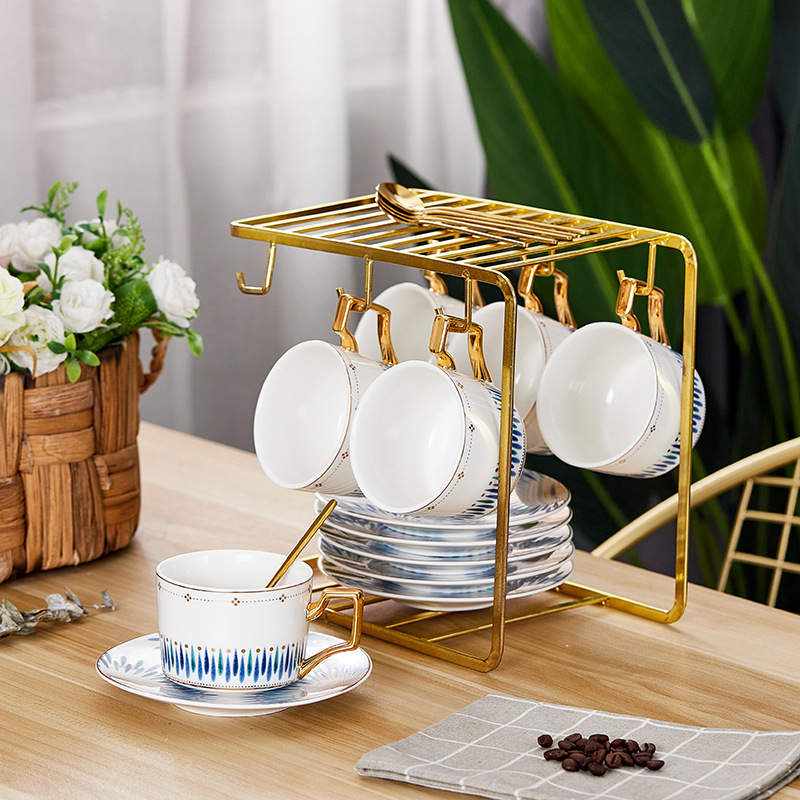 蒂范欧式咖啡杯碟套装带铁架跨境对杯礼盒装下午茶真金手柄杯批发