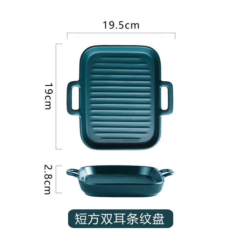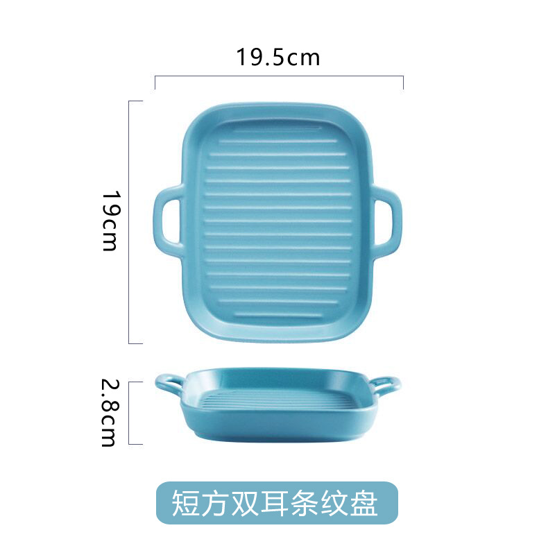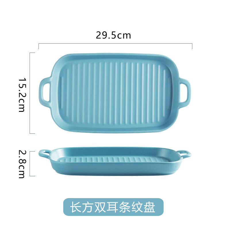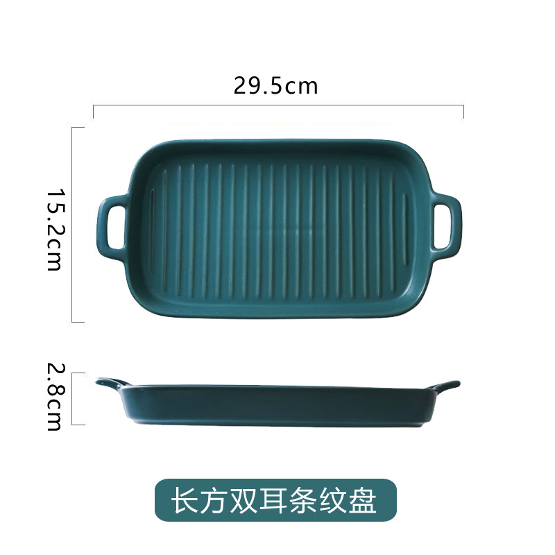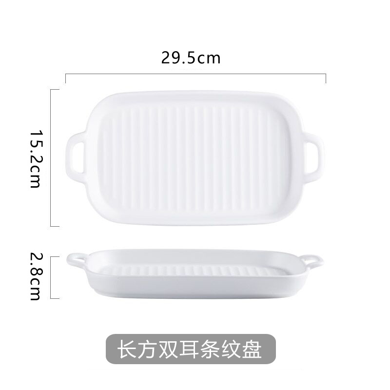 蒂范厂家批发陶瓷条纹双耳烤盘西餐意面家用餐具北欧长方盘子跨境