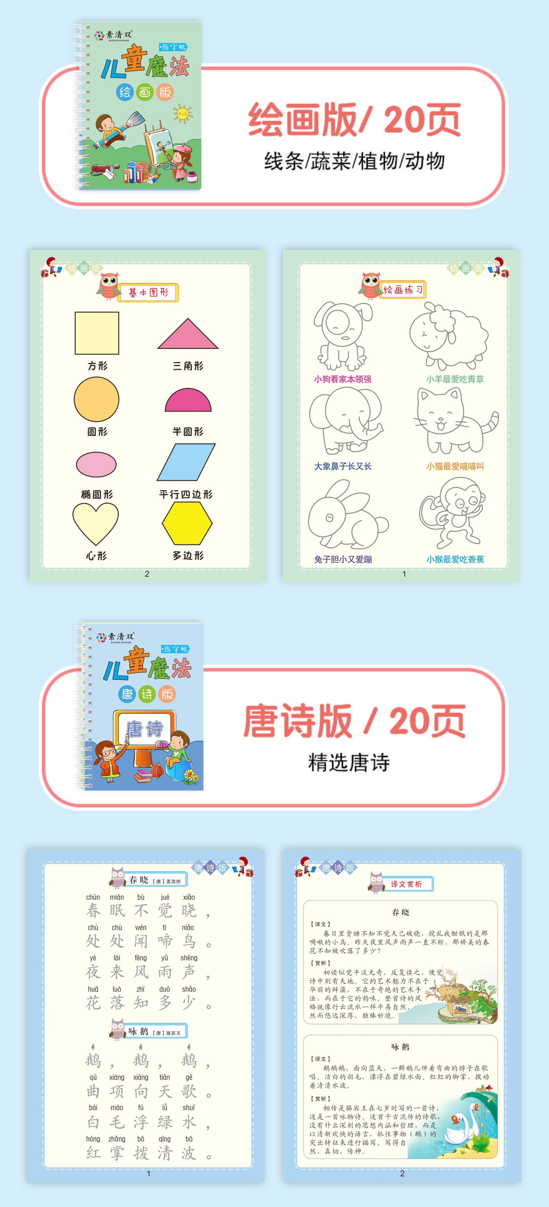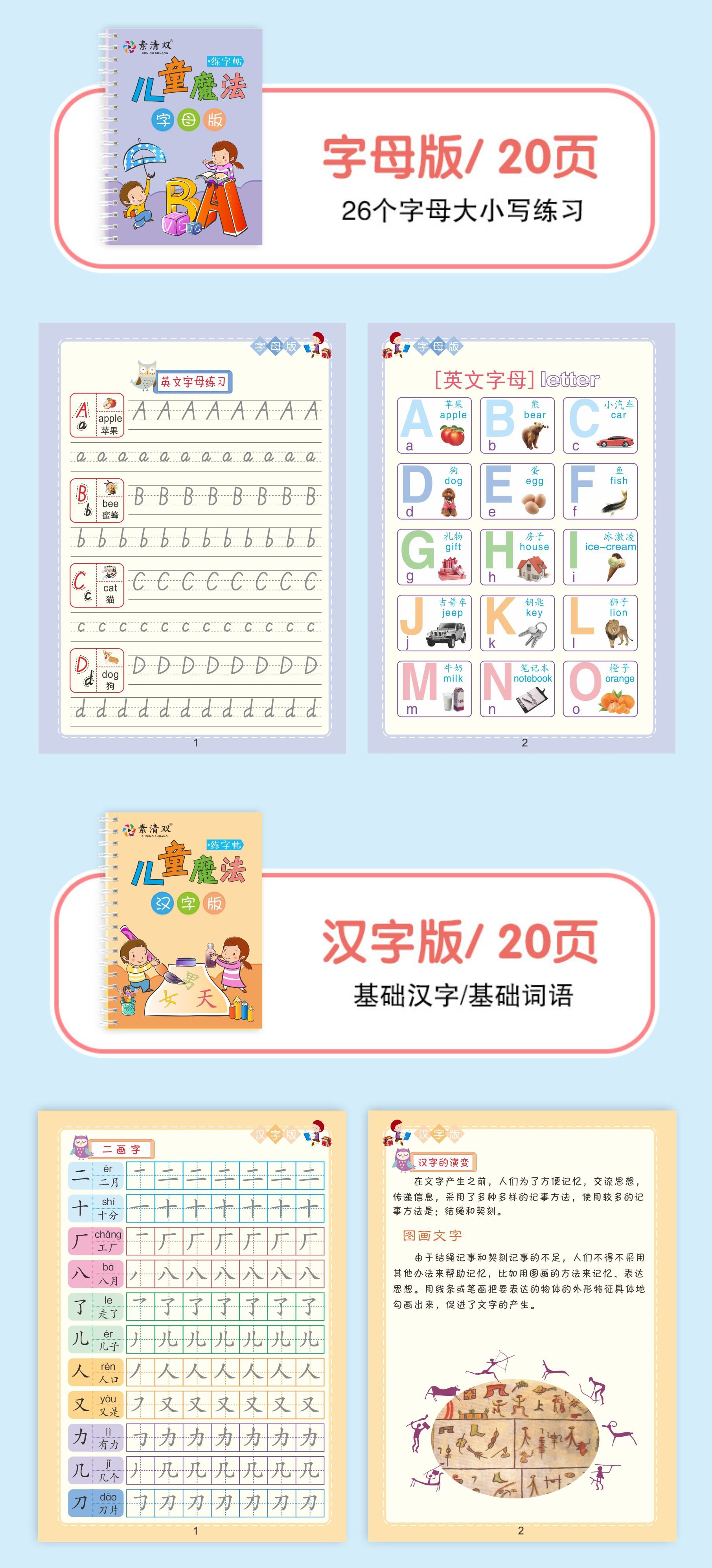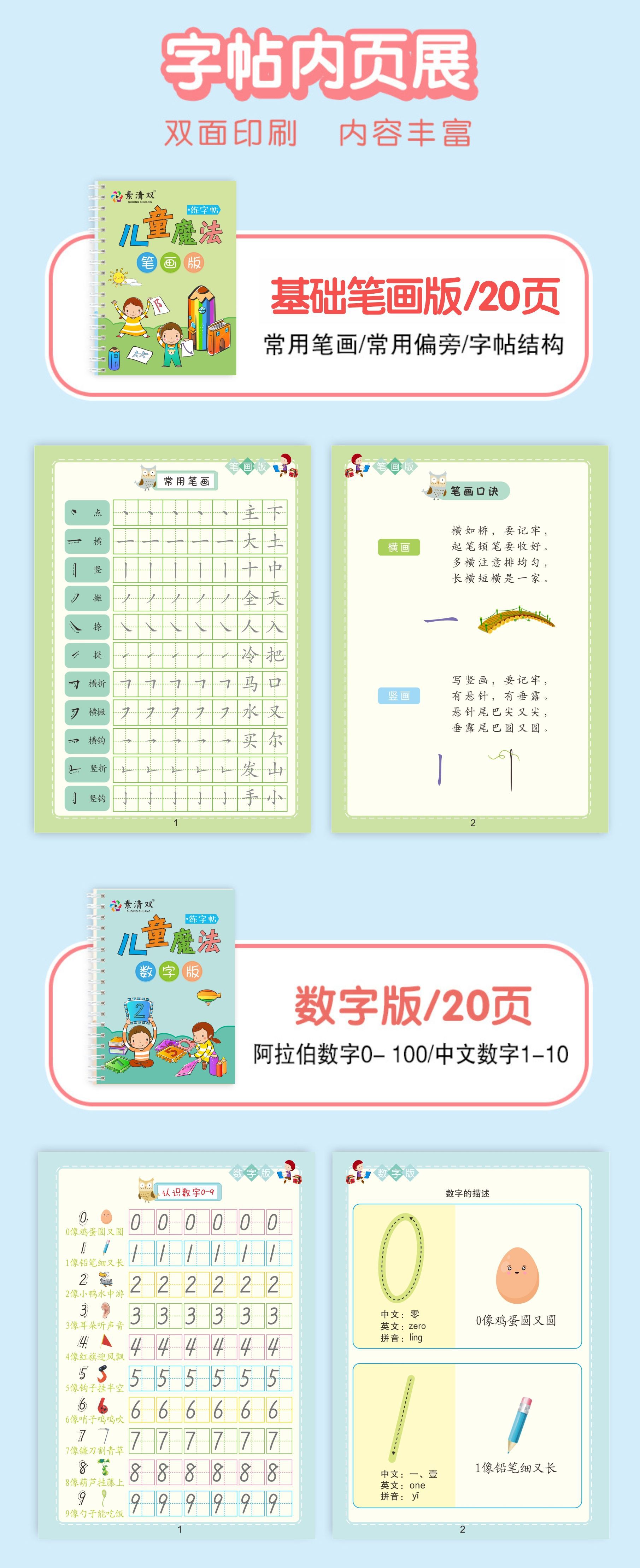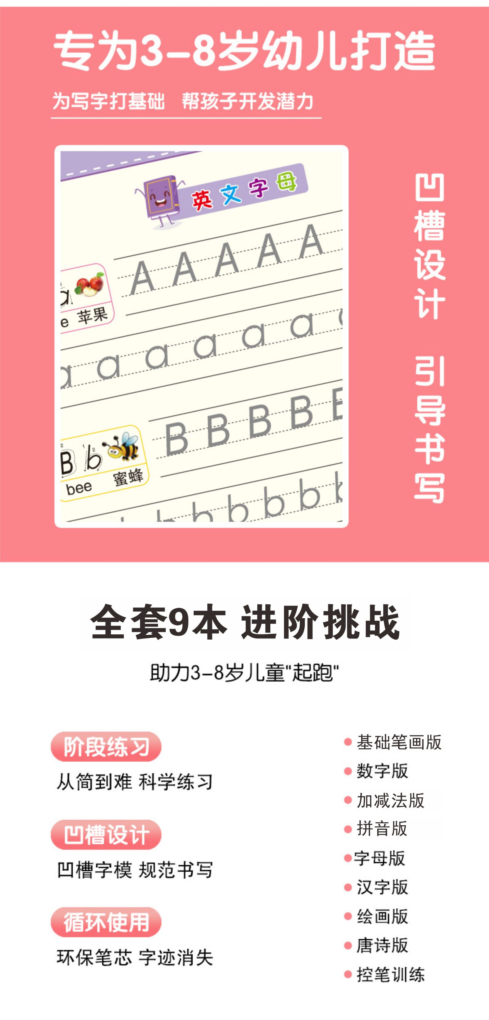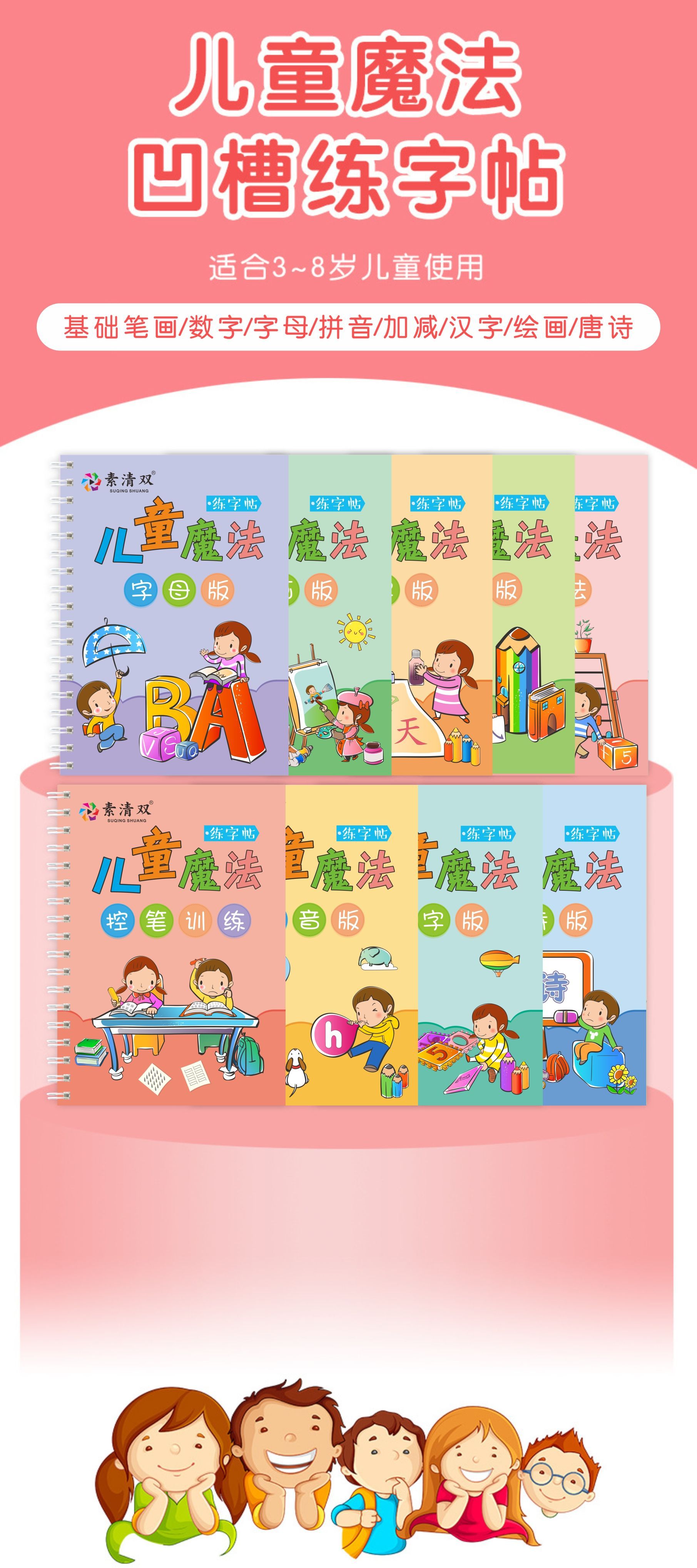 儿童凹槽字帖全套9本魔法练字帖褪色学前练字学生初学宝宝描红